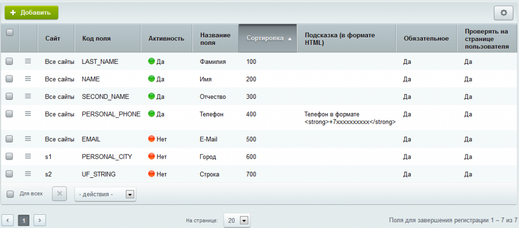 Модуль позволяет удобно настроить список полей для профиля пользователя и правила проверки.