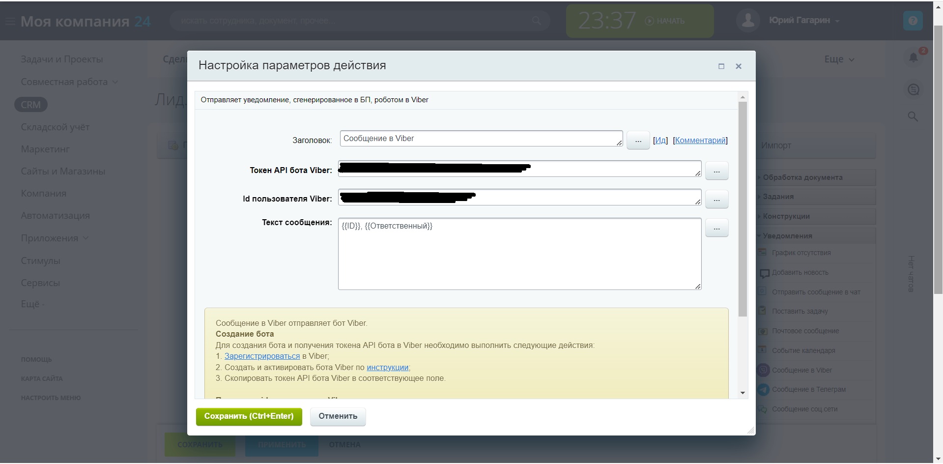 Получайте сообщения, сгенерированные бизнес-процессами, моментально в одном из наиболее востребованном канале связи Viber!