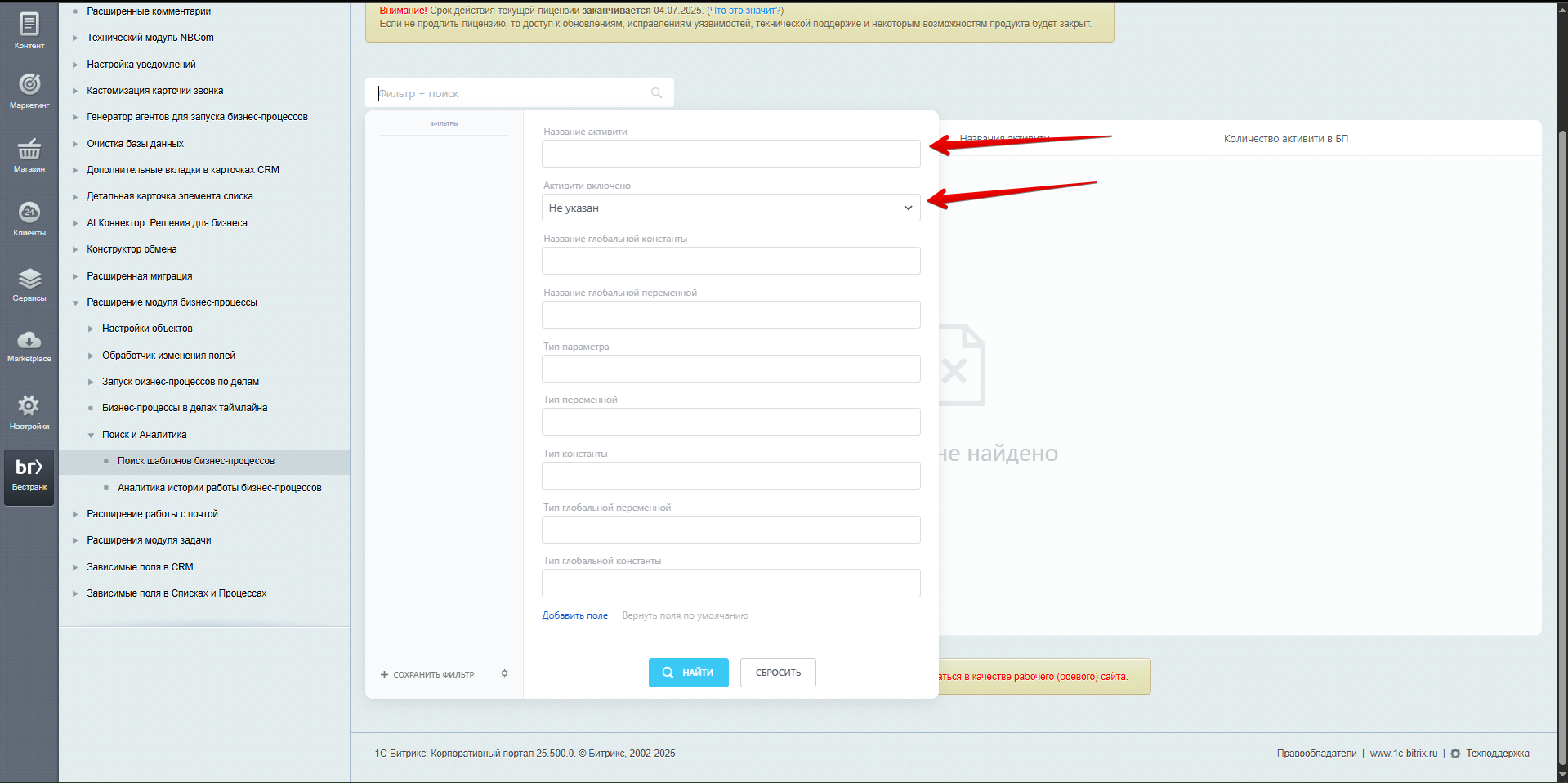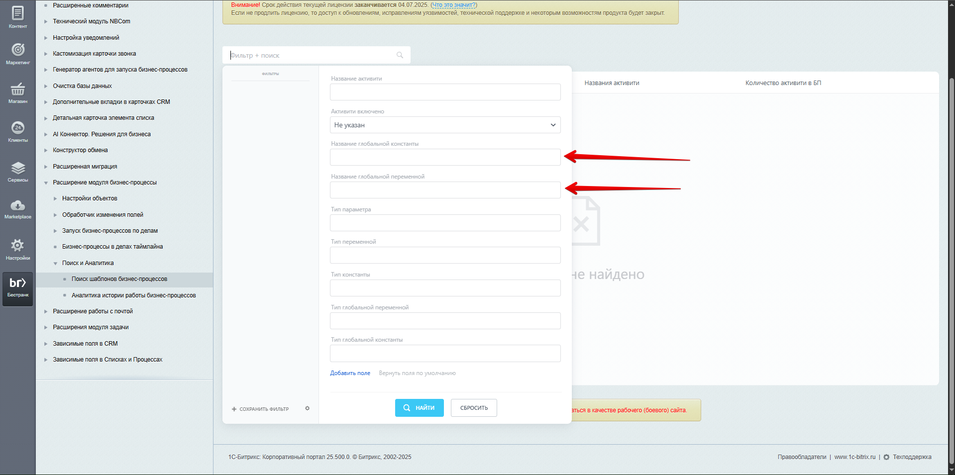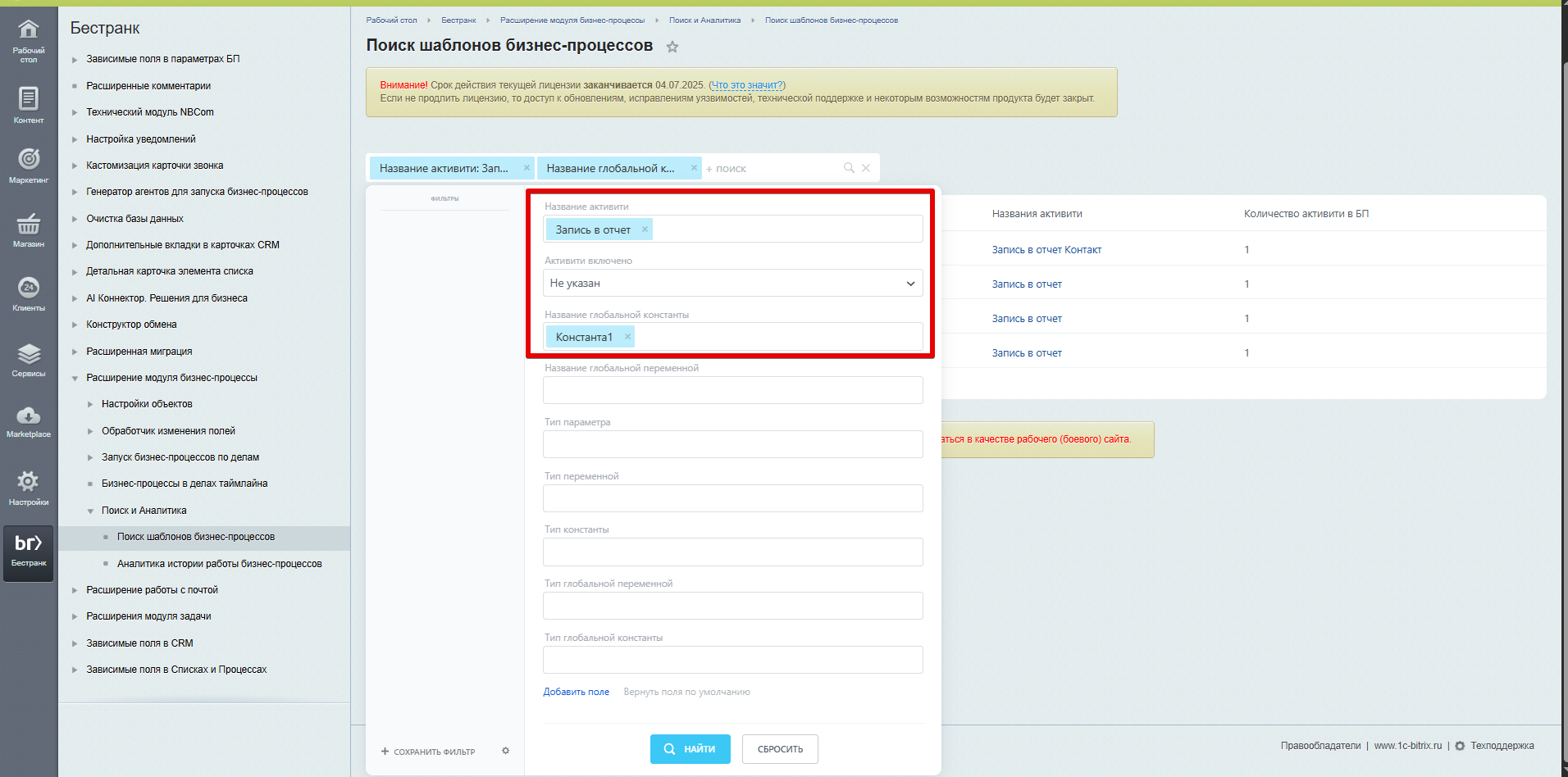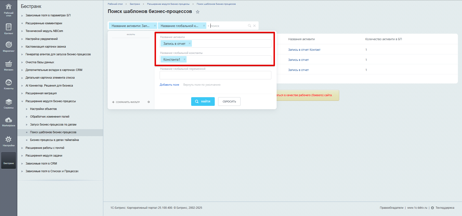 - Искать бизнес-процессы по активити, параметрам, константам/переменным