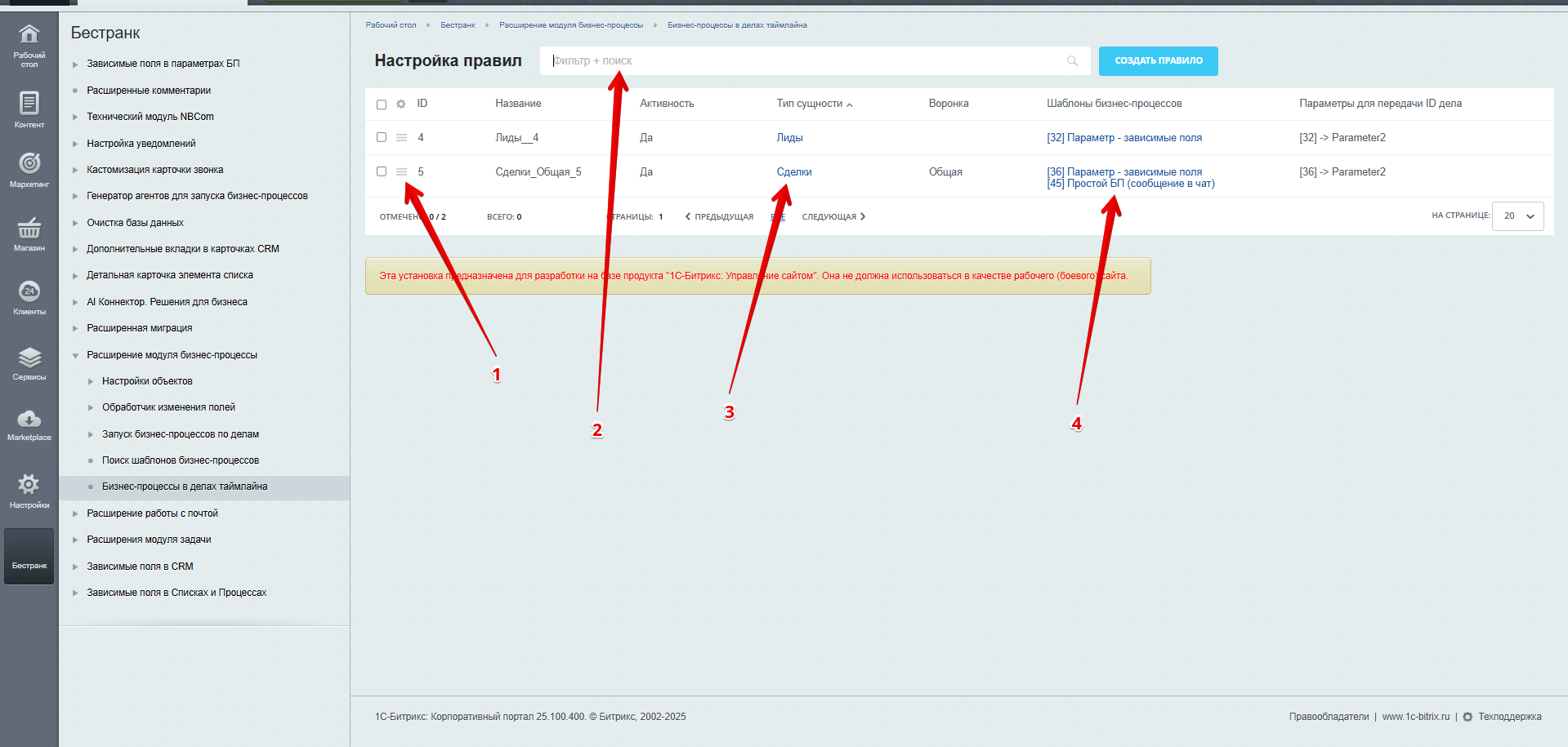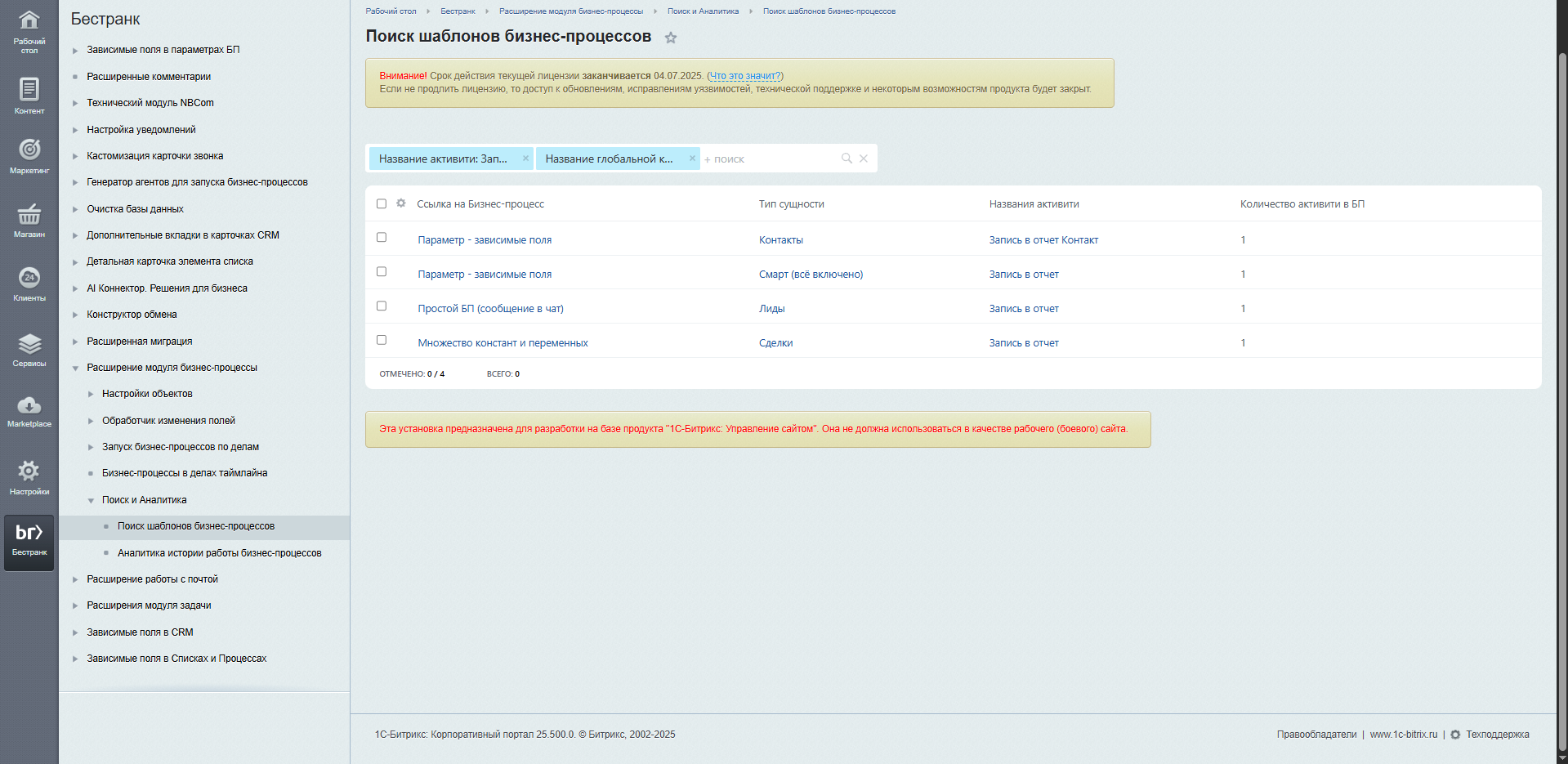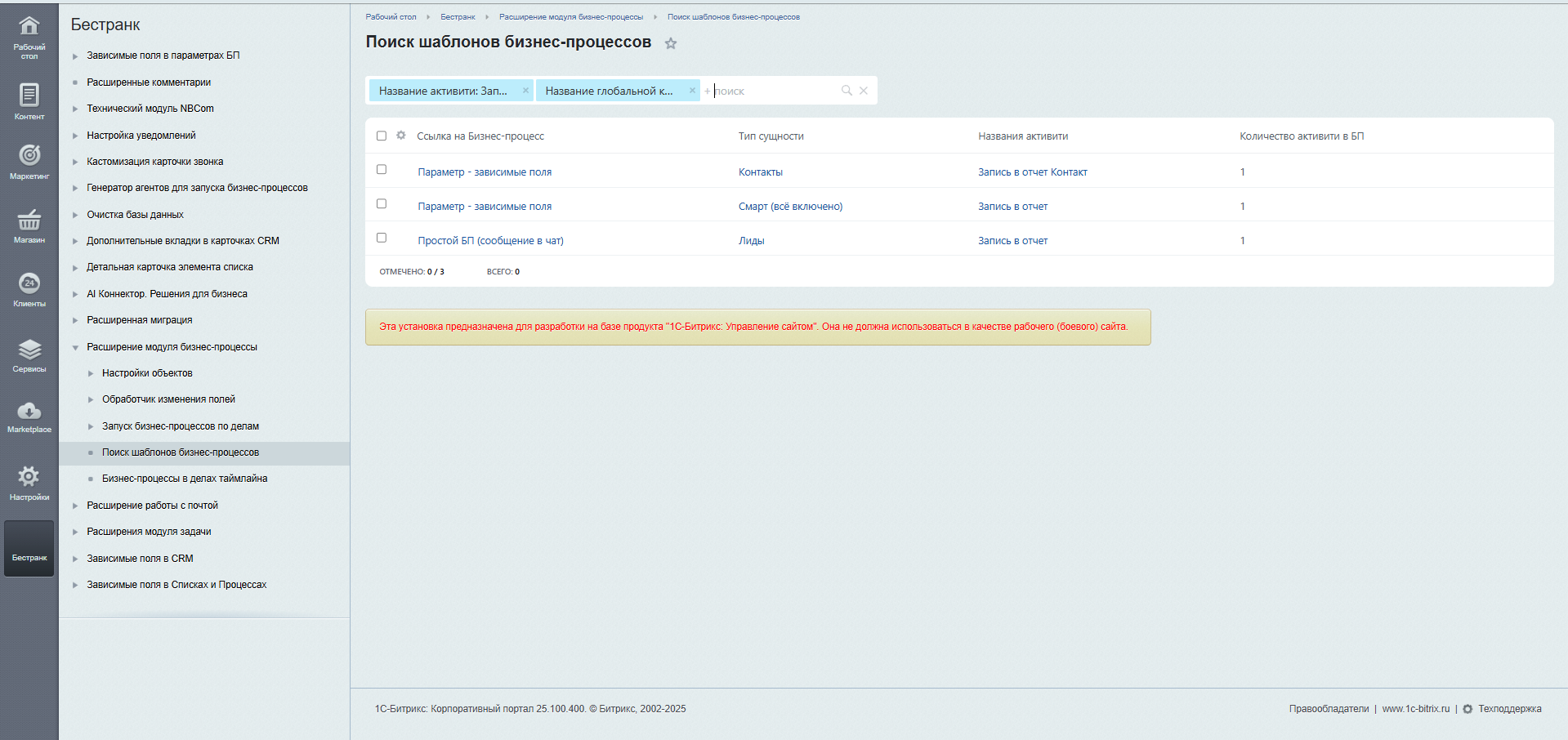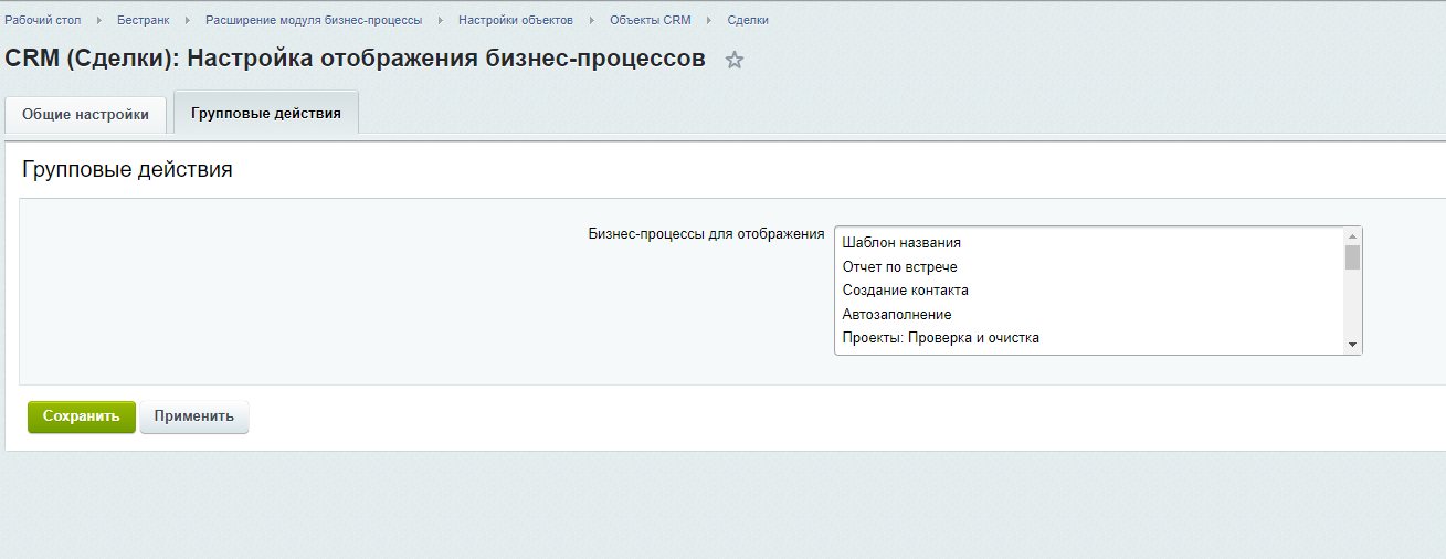 - Отображать бизнес-процессы в групповых действиях в списках в CRM