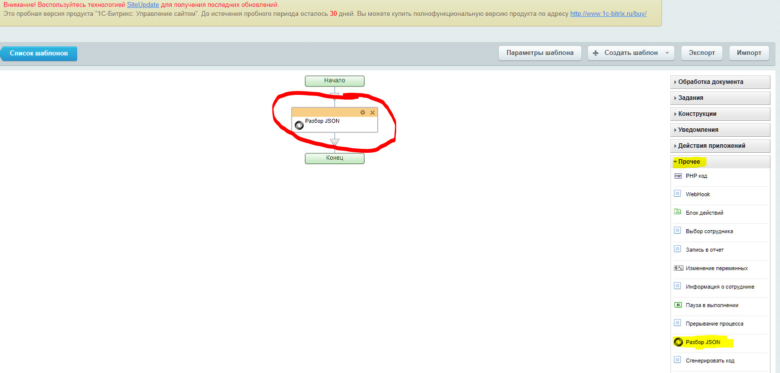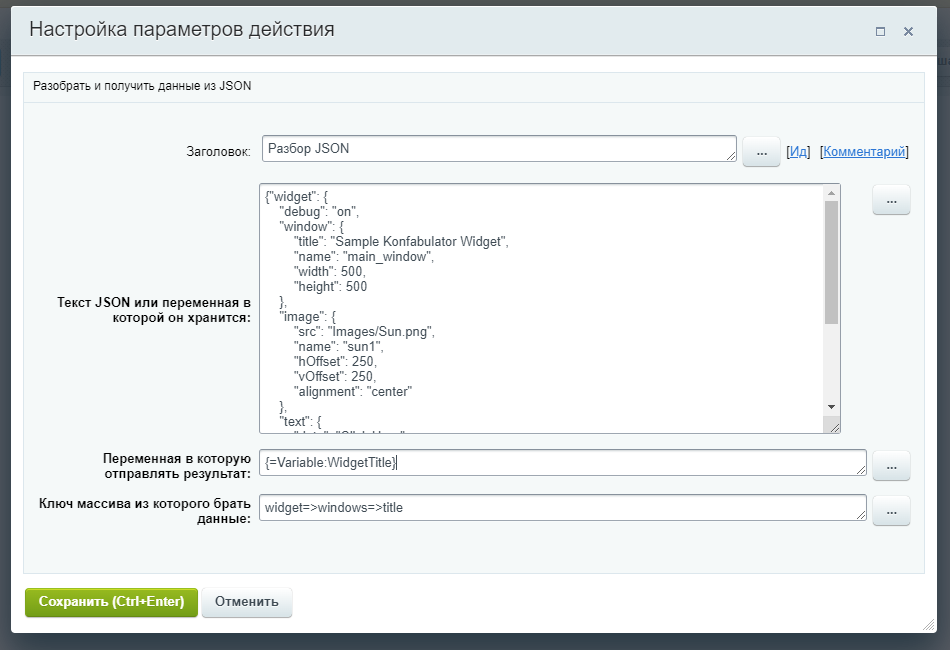 Активити позволяет преобразовать JSON в массив и получить из него необходимые данные, которое можно использовать в переменных Бизнес-Процесса.