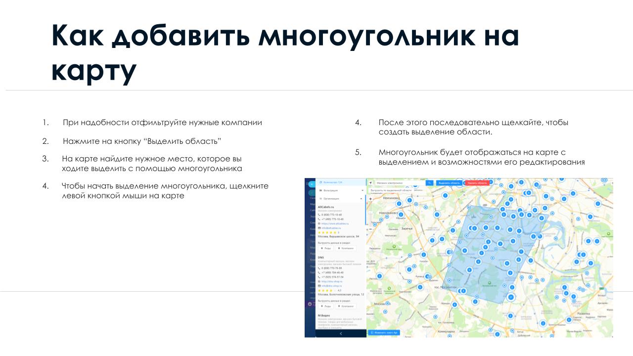 Выделение нужных областей на карте и выгрузка контактов из этих областей.