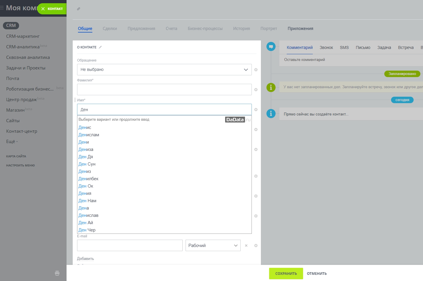 Подключите на страницу Лида / Сделки / Контакта / Компании — скрипты для быстрого ввода ФИО, адресов и реквизитов компаний.
