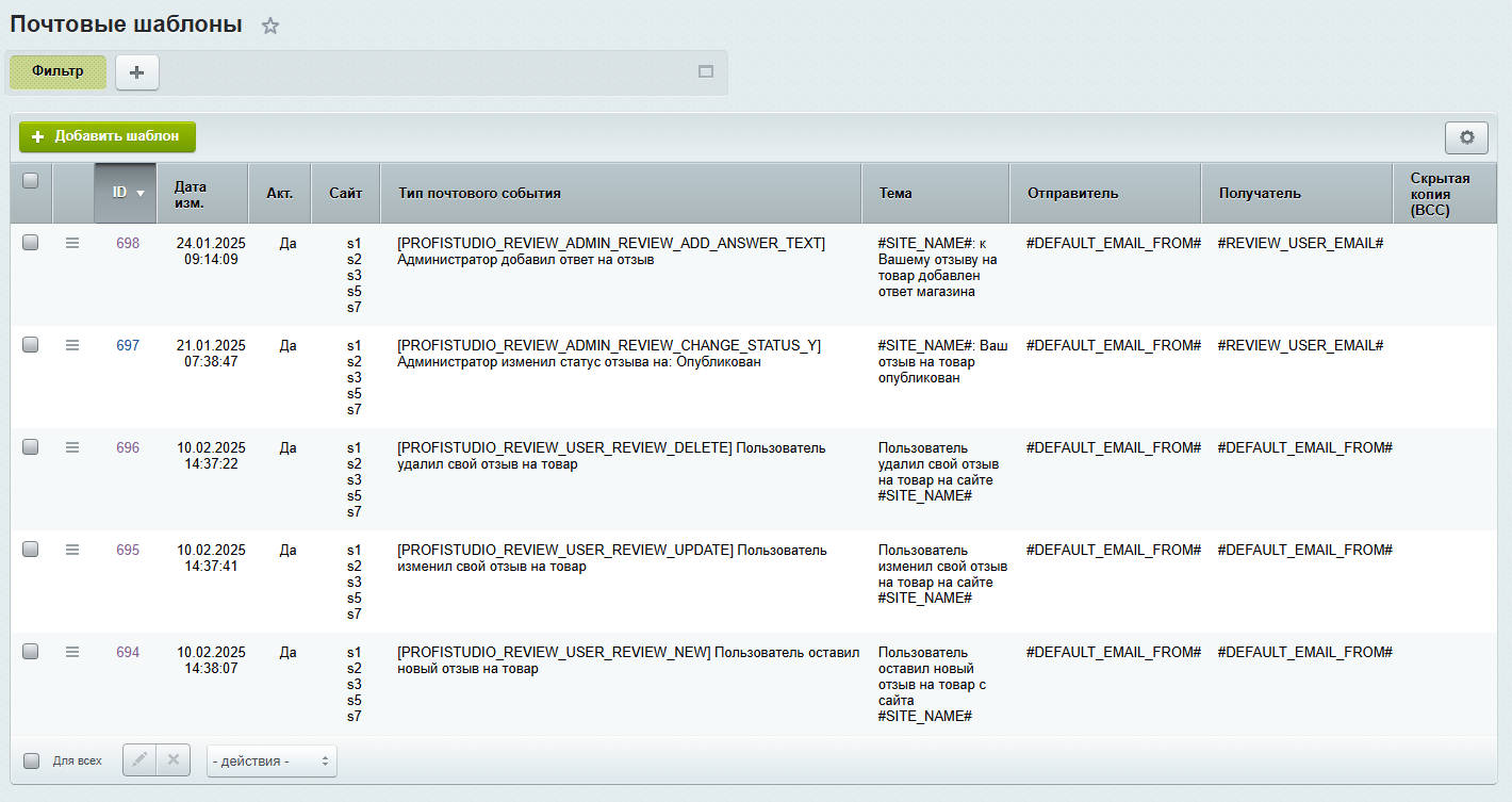 10. Интуитивно понятное управление отзывами и настройками модуля в административной панели.