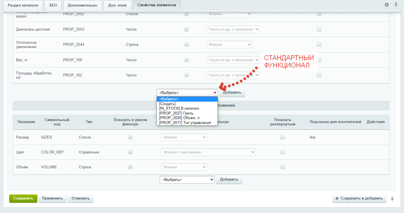 Например, категории каталога "Телевизоры" и "Холодильники" должны иметь разные свойства. Для одного раздела актуально свойство "Диагональ экрана", для другого - "Система No Frost". Если свойств много, то распределение свойств по категориям может превратиться в настоящую муку.