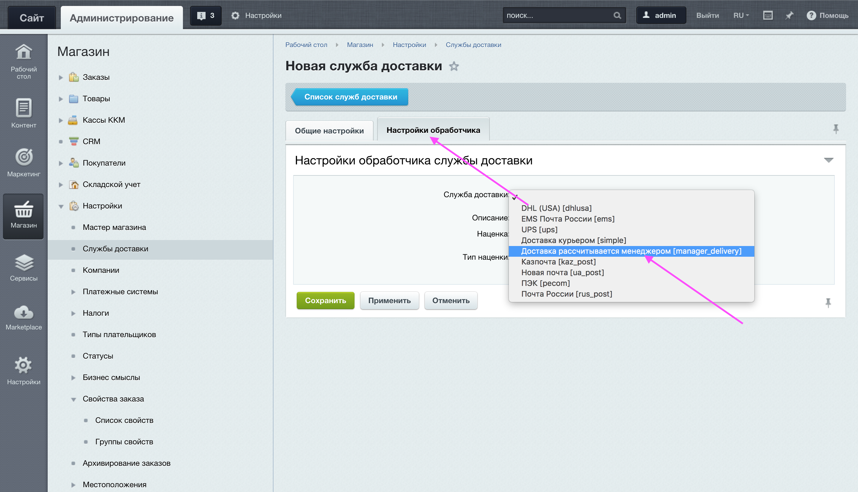 Автоматизированный способ доставки, который всегда будет выдавать сообщение, что стоимость доставки будет рассчитана менеджером.