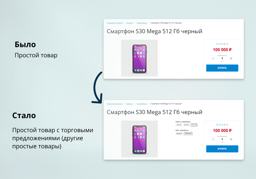 Ценность модуля — одновременное использование преимуществ простых товаров и торговых предложений: