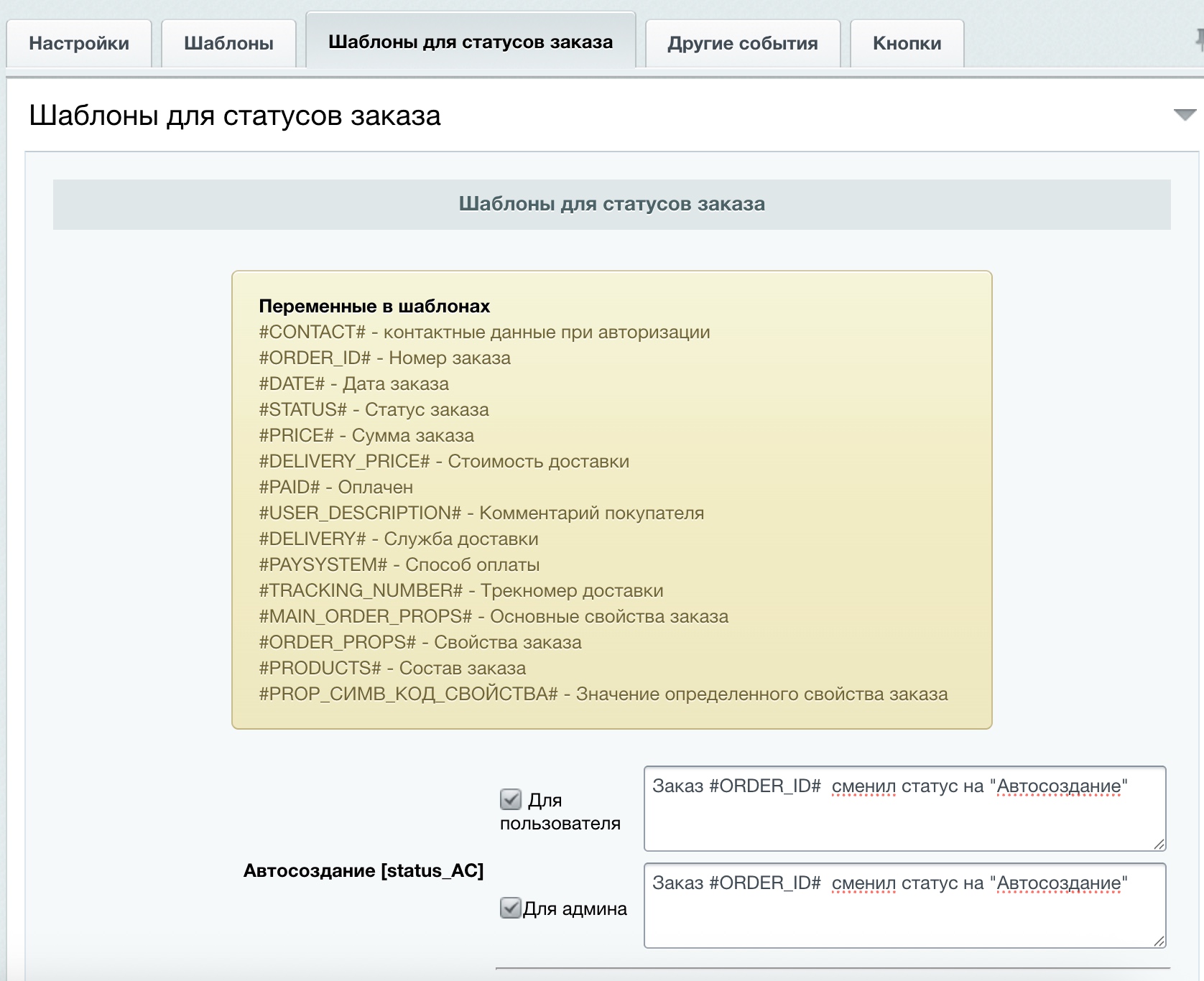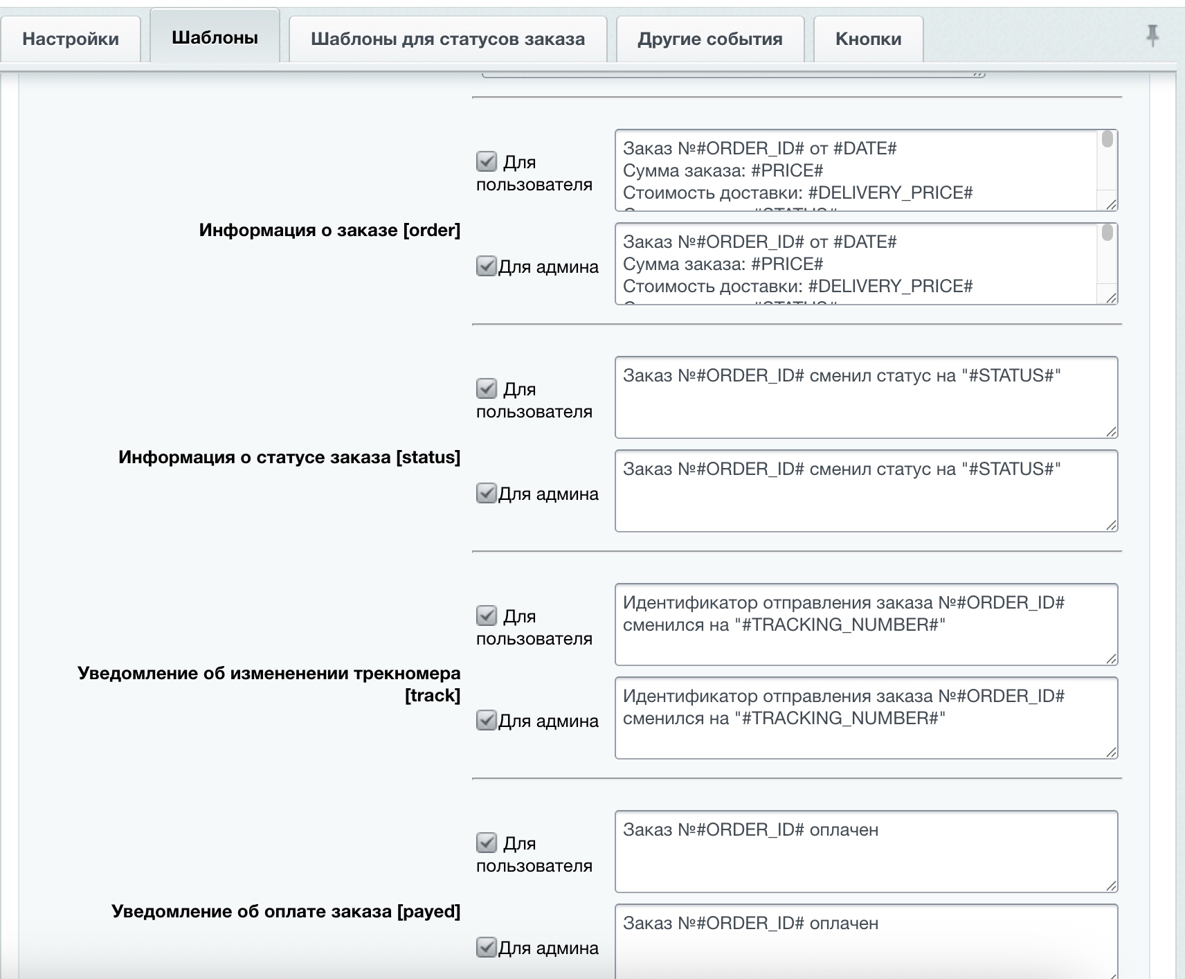 - Настраиваемые шаблоны уведомлений со всеми необходимыми переменными