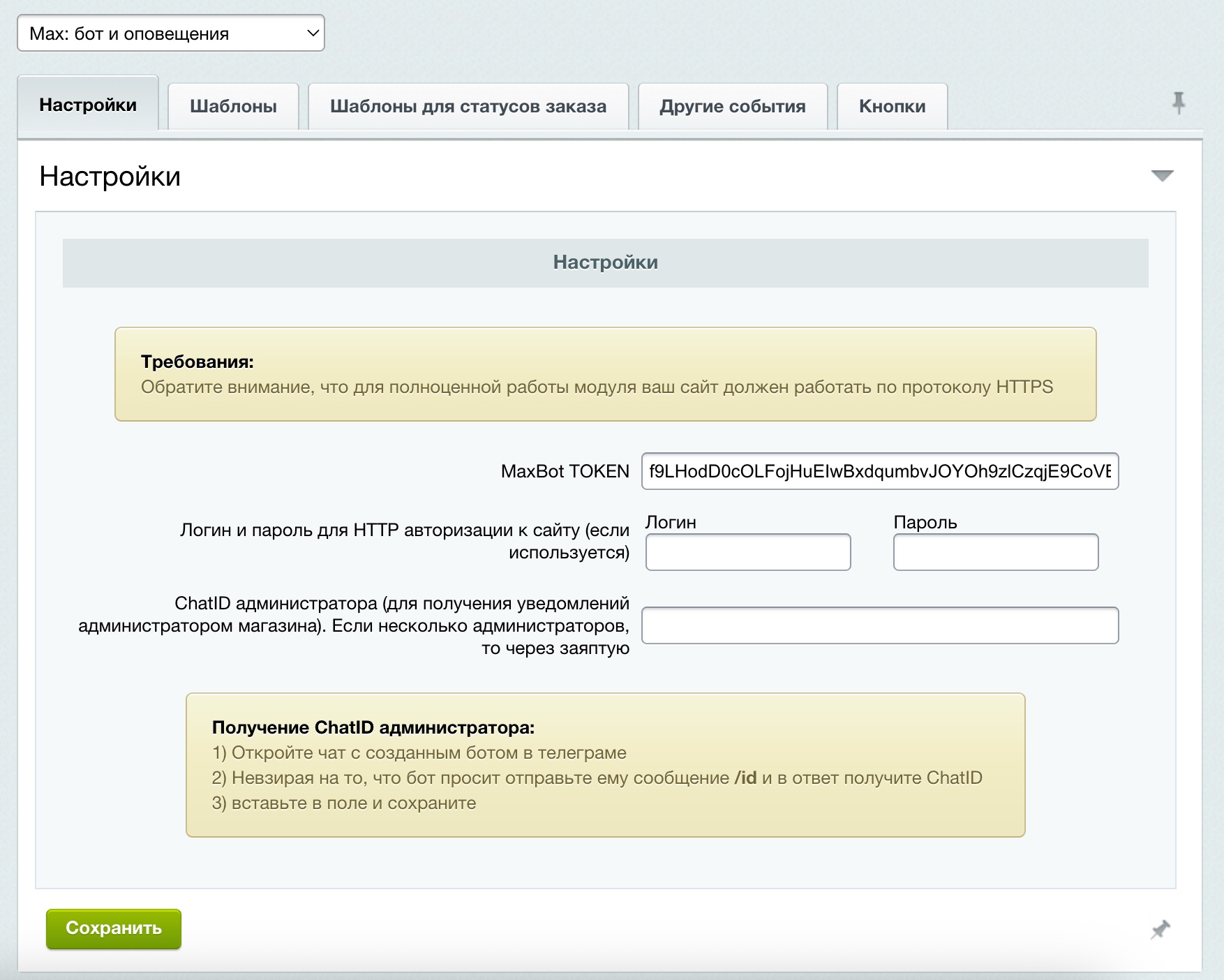 - Включение и отключение уведомлений отдельно для пользователя и администратора