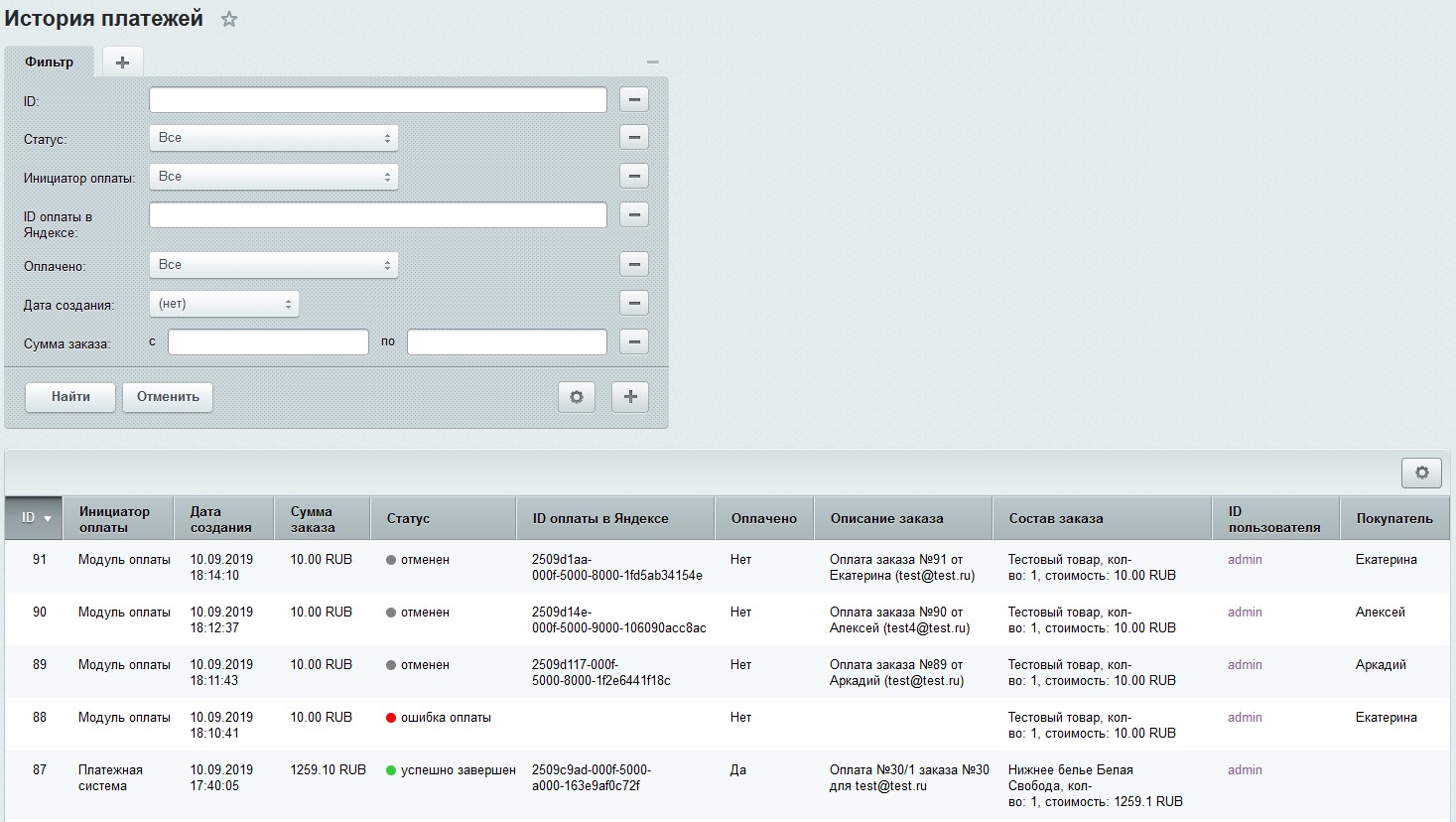 - обработчик платежной системы для оплаты товаров в интернет-магазине при оформлении заказа, доступный для редакций "Малый бизнес" и "Бизнес".