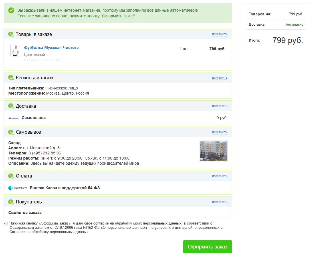Оформление заказа в стандартном режиме выглядит следующим образом. Заполняете полностью форму по последовательным этапам: адрес, способ доставки, оплаты, данные о себе. Советуем в комментарии к заказу написать информацию, которая поможет курьеру вас найти. Нажмите кнопку «Оформить заказ».