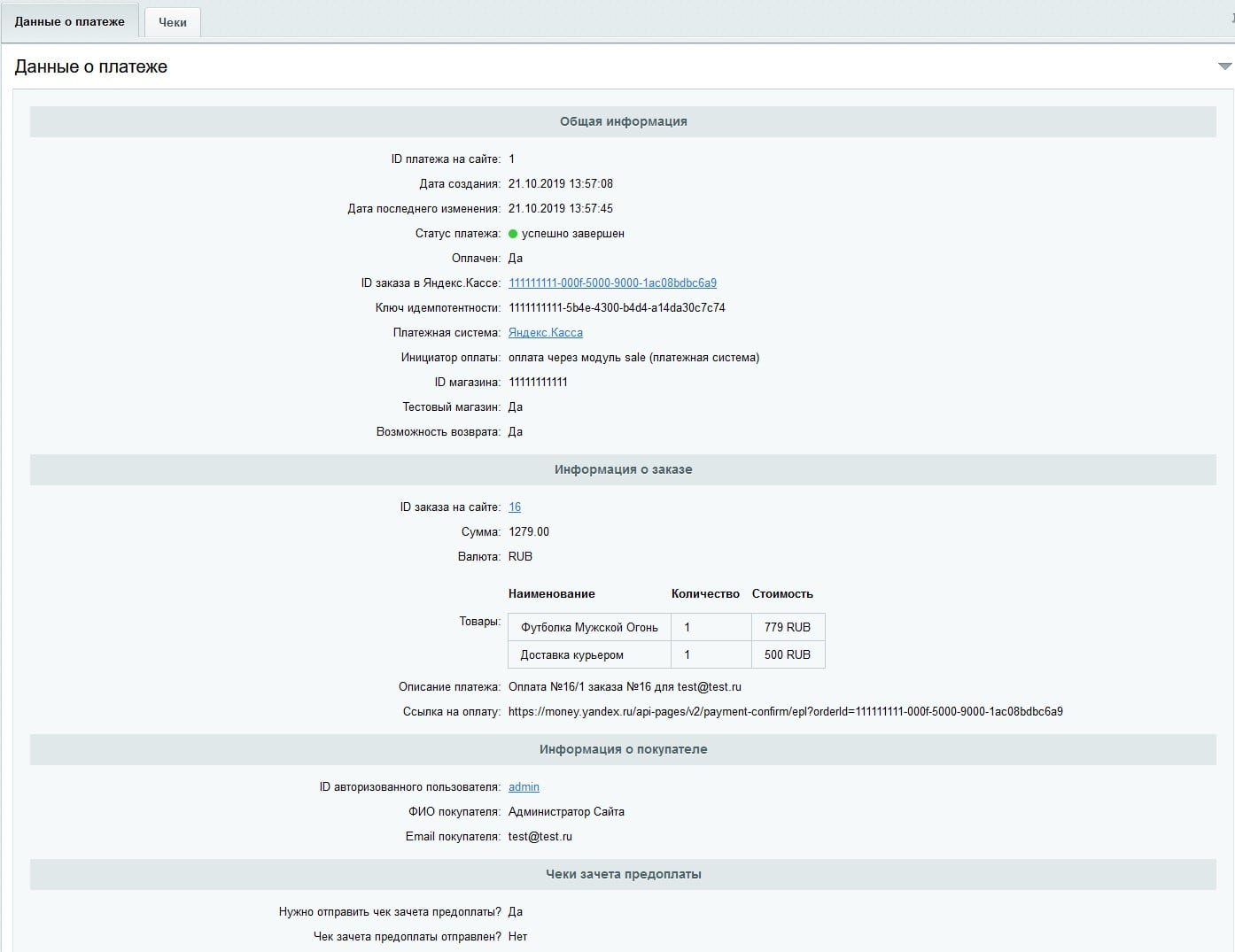 - Поддержка функционала двухстадийного платежа (холдирование) и возврата платежей (вручную через страницу "История платежей").