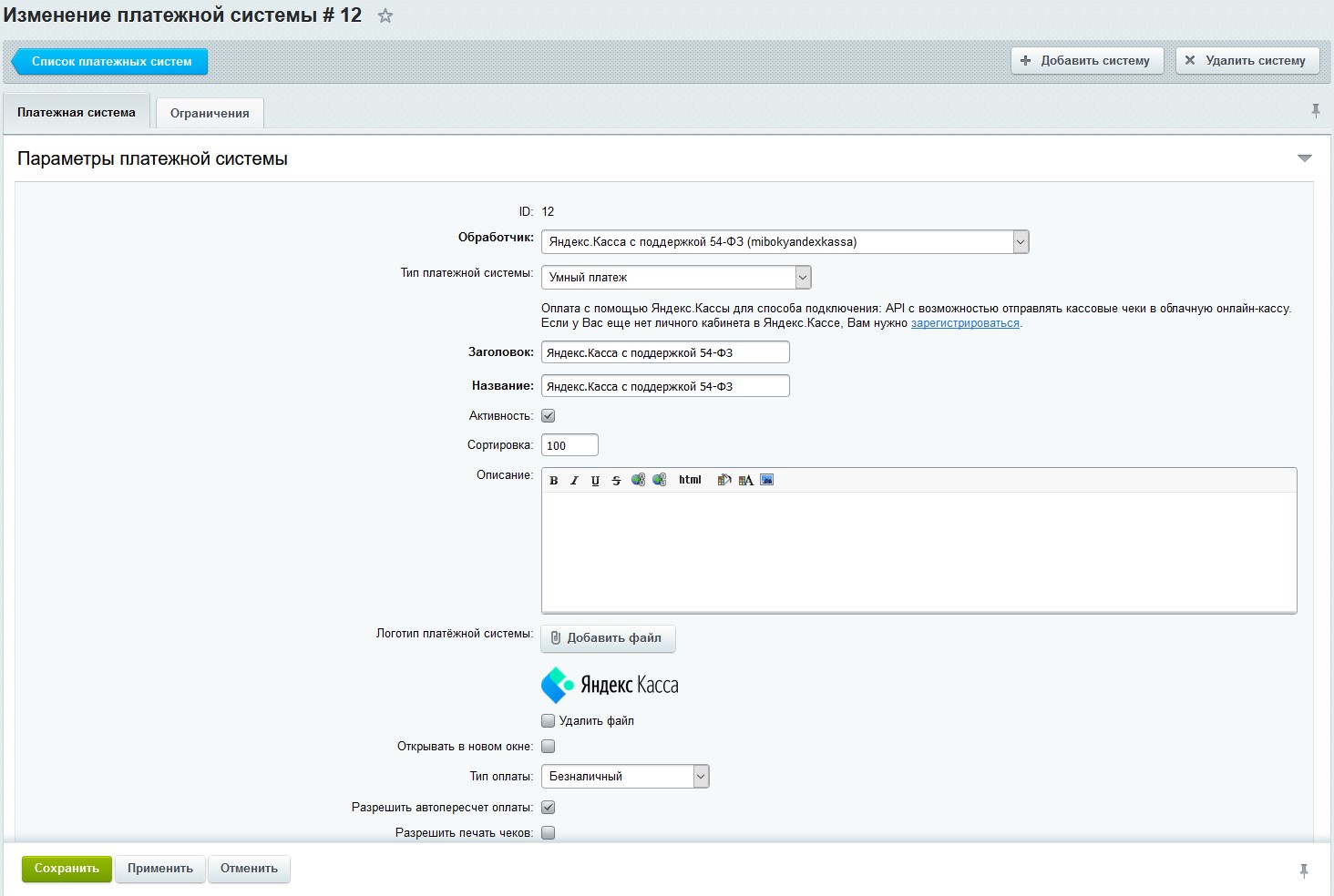 Модуль позволяет производить оплату на сайте с использованием платежной системы ЮKassa (Яндекс Касса) по новому протоколу API на любой редакции Битрикса (в перспективе добавление дополнительных платежных систем, следите за обновлениями продукта).