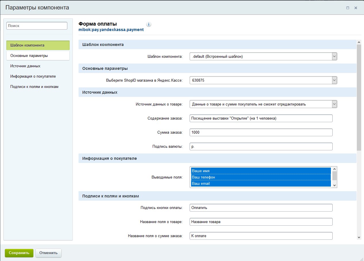- компонент формы оплаты для приема платежей в 1 клик, доступный на редакциях "Первый сайт", "Старт", "Стандарт", "Эксперт", "Малый бизнес" и "Бизнес";