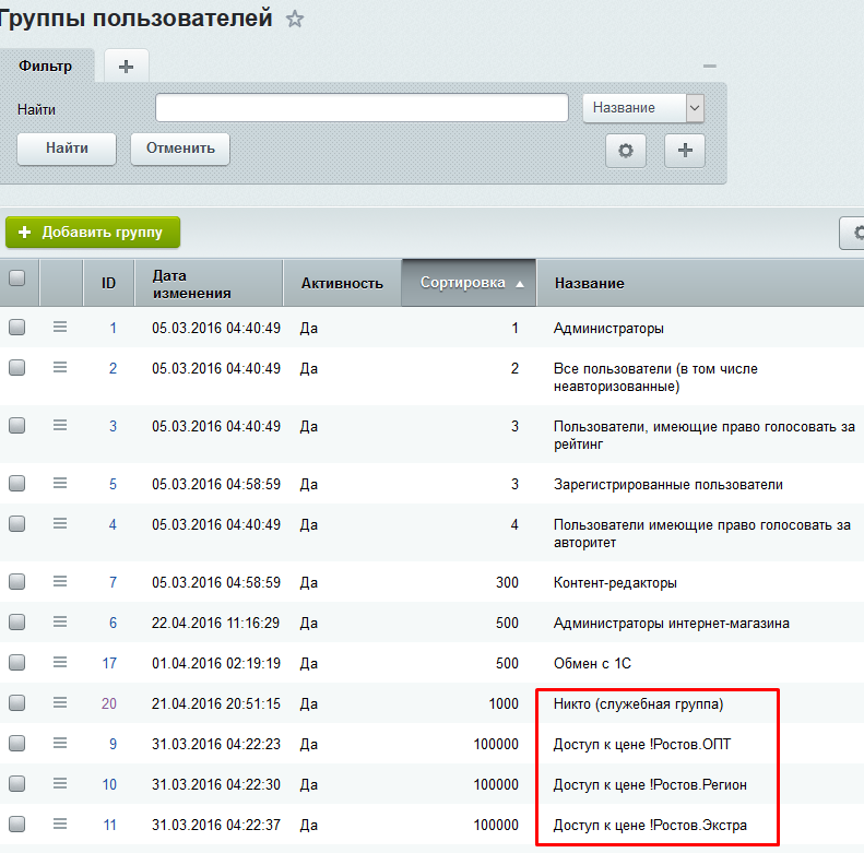 pricegroup - Тип цен. При выгрузке из 1С нового типа цен создать новую группу пользователей и привязать к ней тип цен