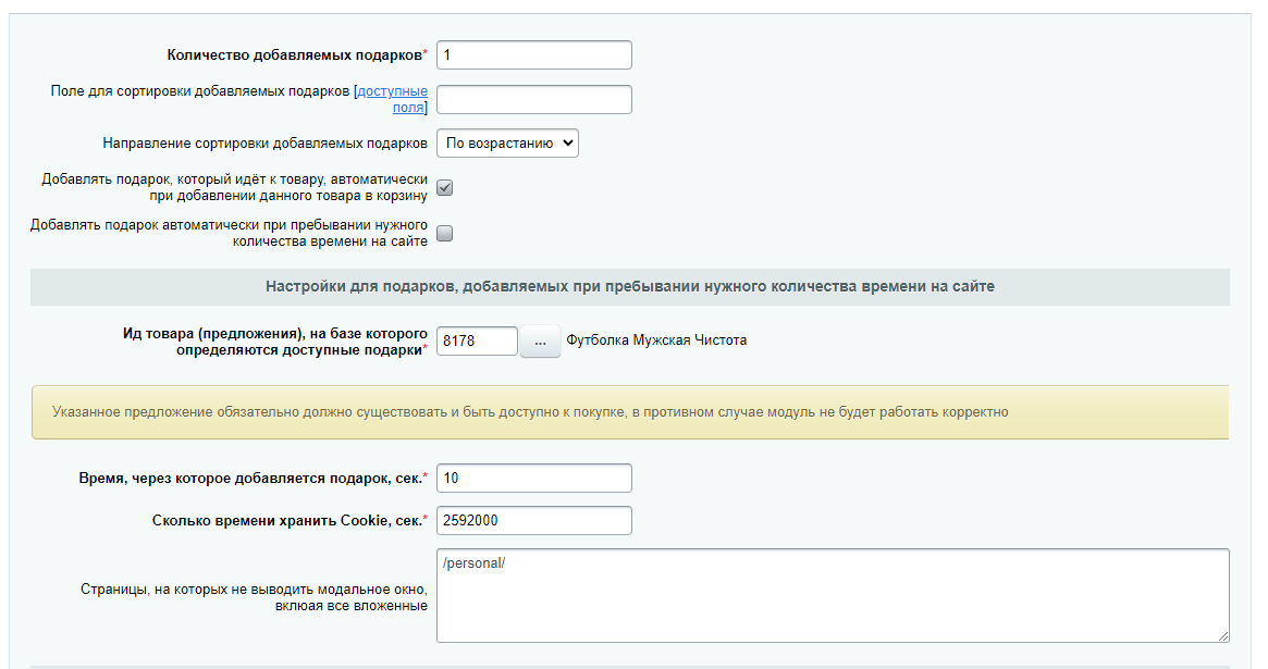Подарок автоматически добавляется в корзину посетителя через заданный таймаут времени. А если у вас в корзине не настроен вывод блока доступных подарков, то подобный функционал просто незаменим.