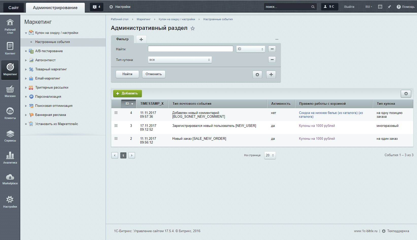 Если вы используете дополнительные готовые решения других разработчиков из Marketplace, они тоже чаще всего имеют собственные почтовые события. Взять хотя бы наши: адаптивные / древовидные / расширенные комментарии, сайт услуг.