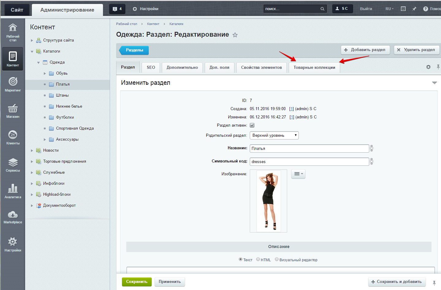 Разделы, где должны отображаться товары определенных параметров, например, принадлежать одному какому то бренду, или иметь конкретный цвет. Случаев бесчисленное множество. Вручную привязывать товары к такому разделу далеко не очень удобно. Модуль «Товарные коллекции в разделах» позволяет легко организовать подобные разделы.