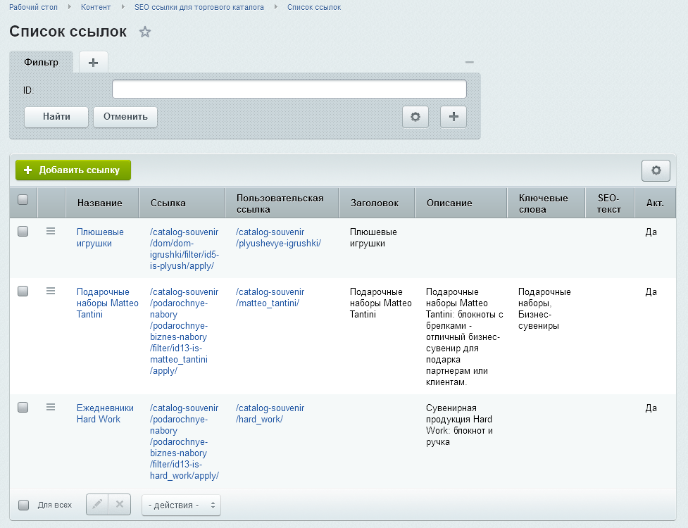 Для SEO-продвижения вам может потребоваться создать дополнительные подразделы, которых на сайте нет и их добавление может усложнить структуру. С помощью данного решения можно превратить любую страницу с применённым фильтром в страницу с отдельным url, текстом и мета-тегами.