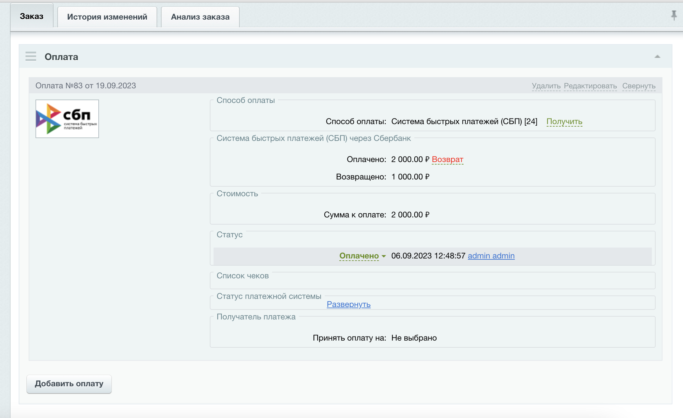 Платежный модуль "Система быстрых платежей (СБП) через Сбербанк":