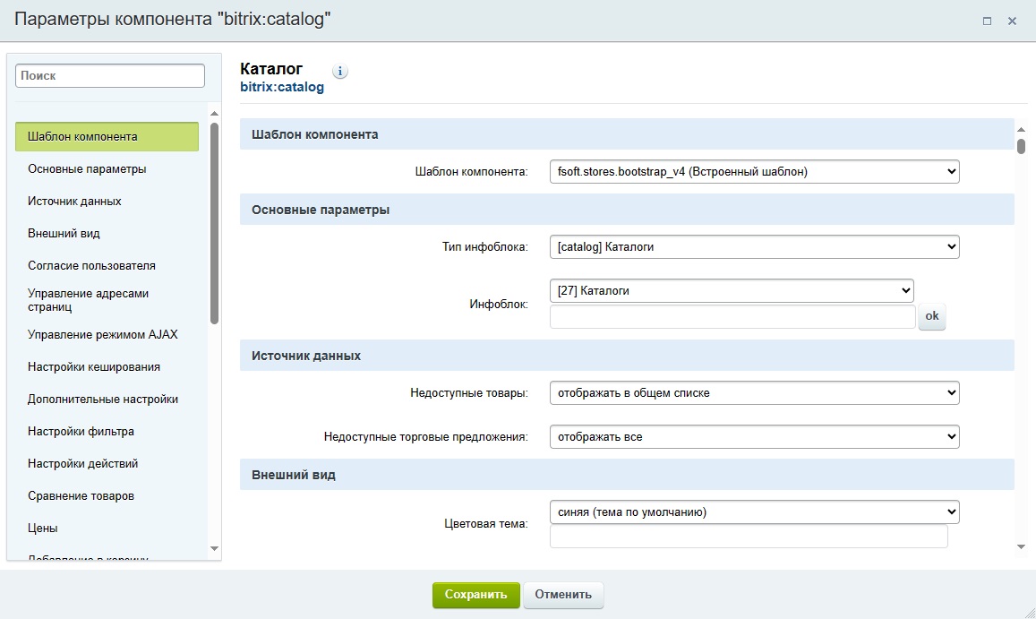 Шаблон стандартного комплексного компонента «Каталог» (fsoft.stores.bootstrap_v4):