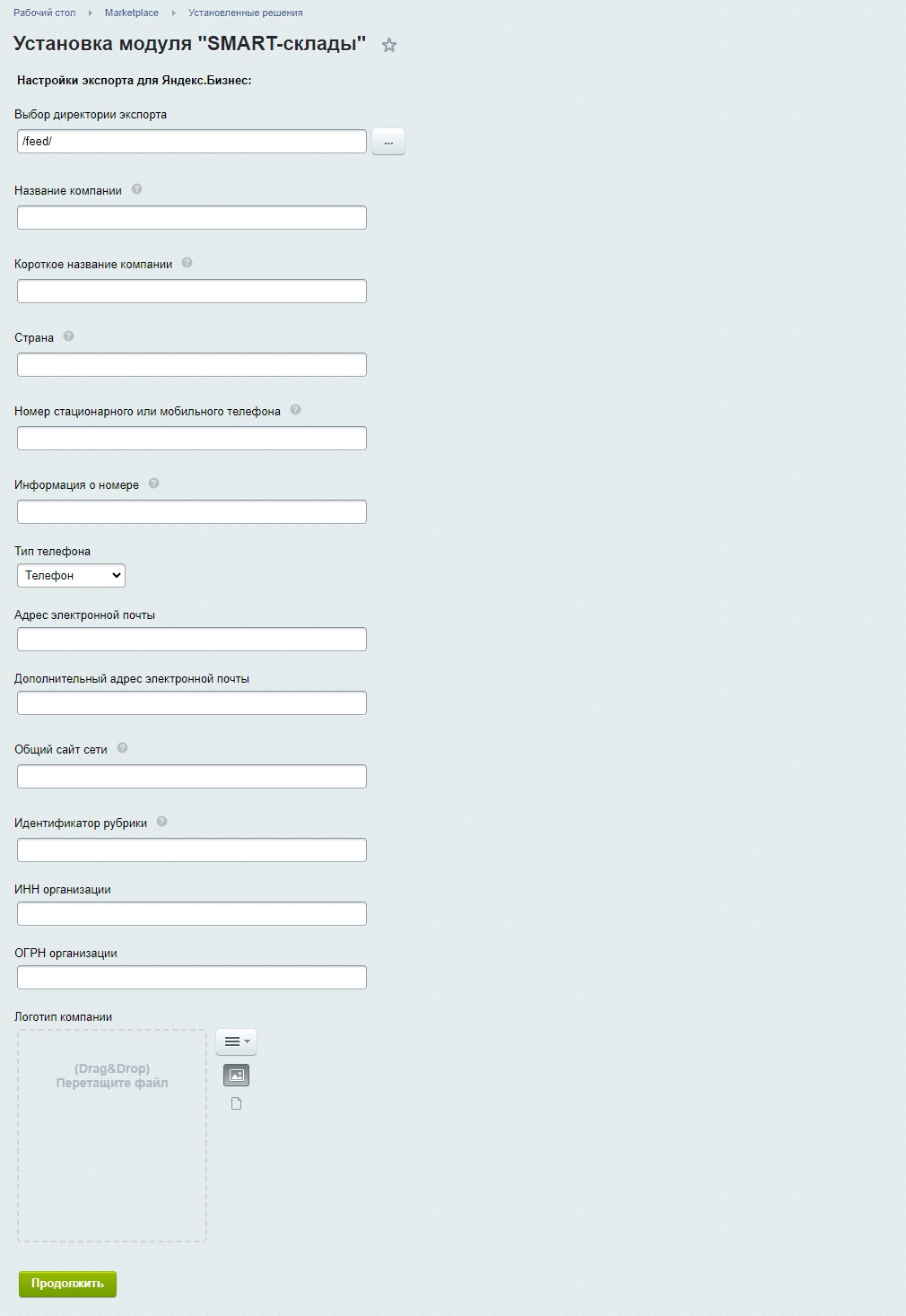 5. Экспорт данных об организации и складов в XML-фид для выгрузки в Яндекс.Бизнес.