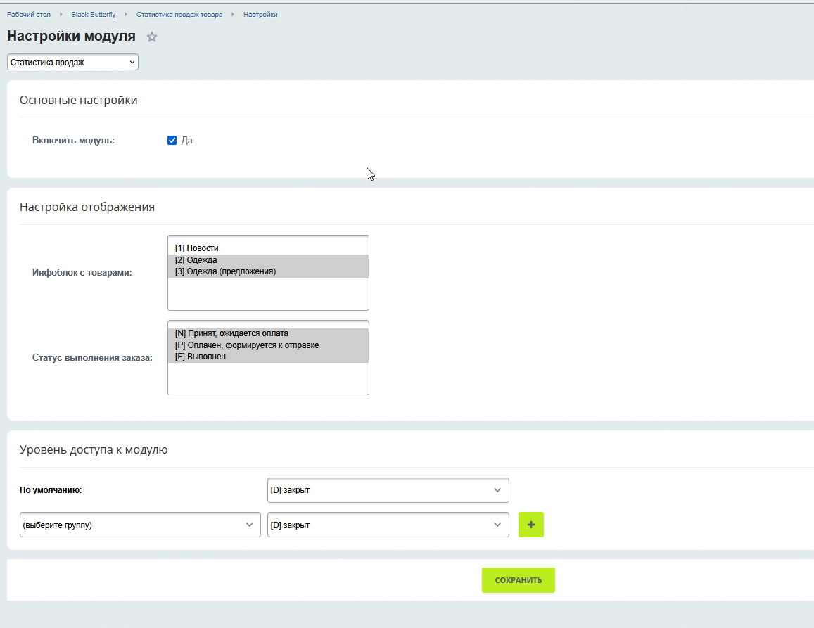 Данный модуль предоставляет статистику продаж выбранного товара за три ключевых периода: