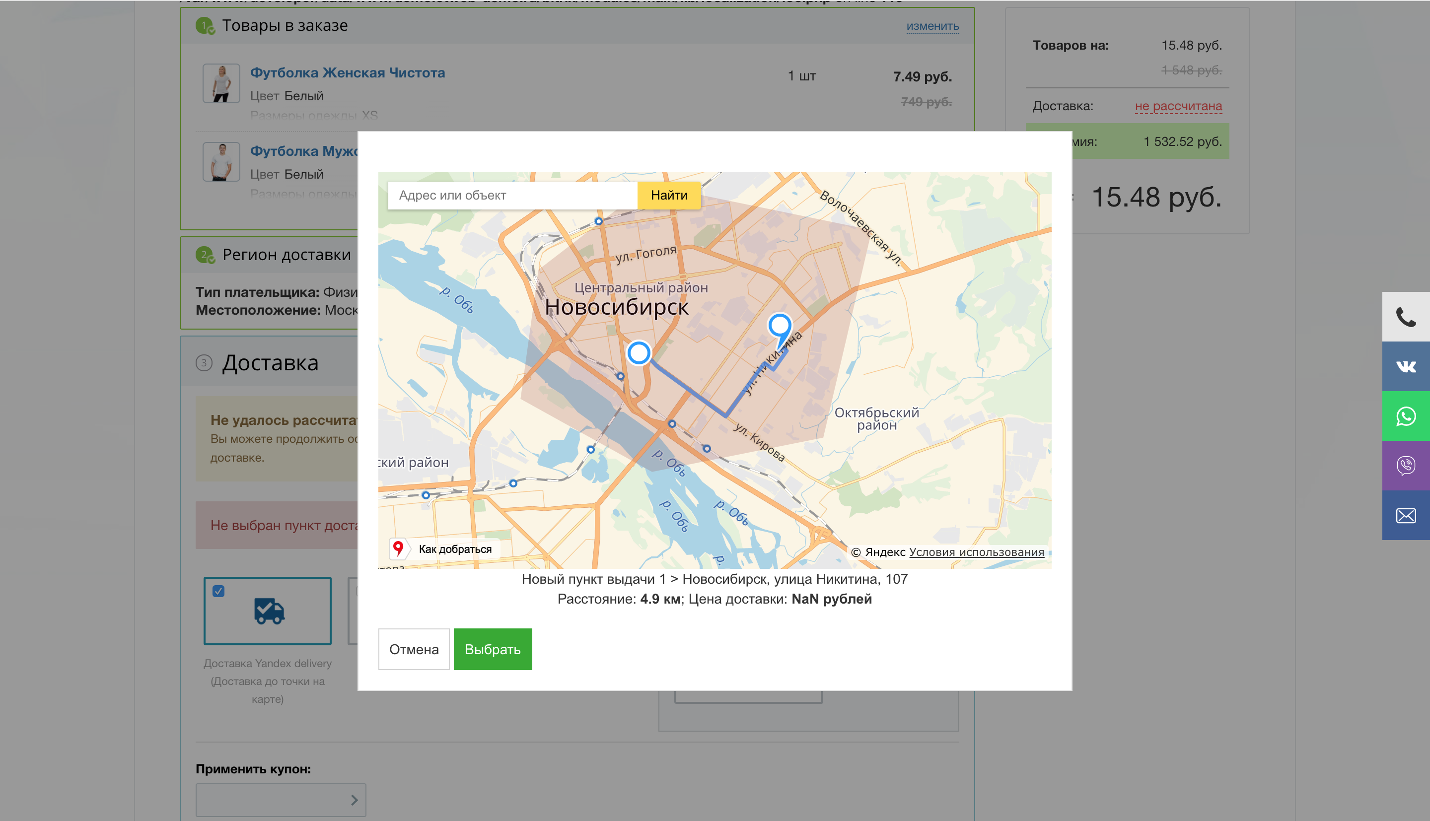 - Можно указать цену доставки за километр (расстояние рассчитывается по проложенному пути);
