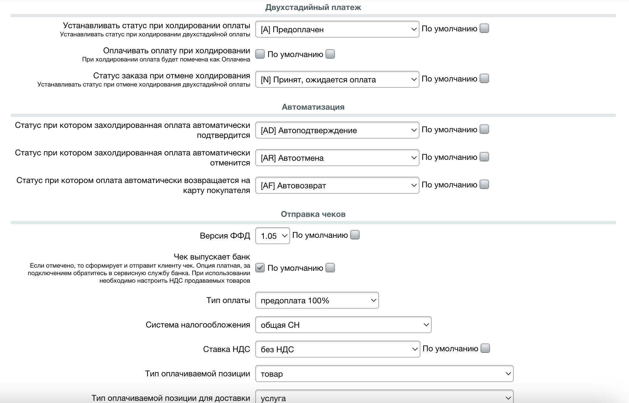 - возможность автоматического подтверждения заблокированной суммы при смене статуса заказа при двухстадийных платежах