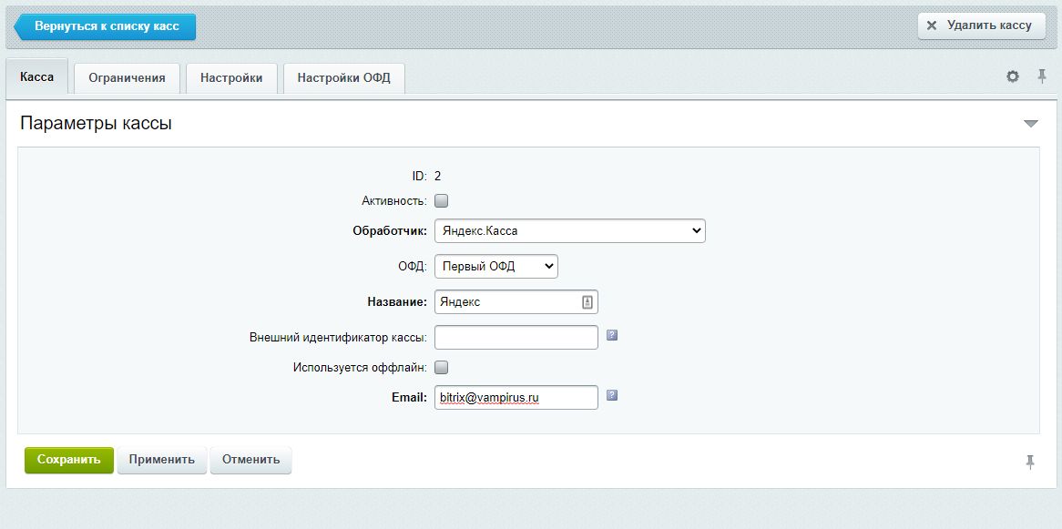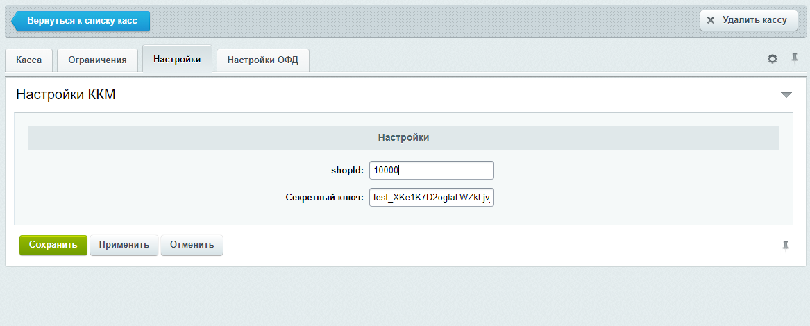 В настройке кассы должен быть указан её регистрационный номер.