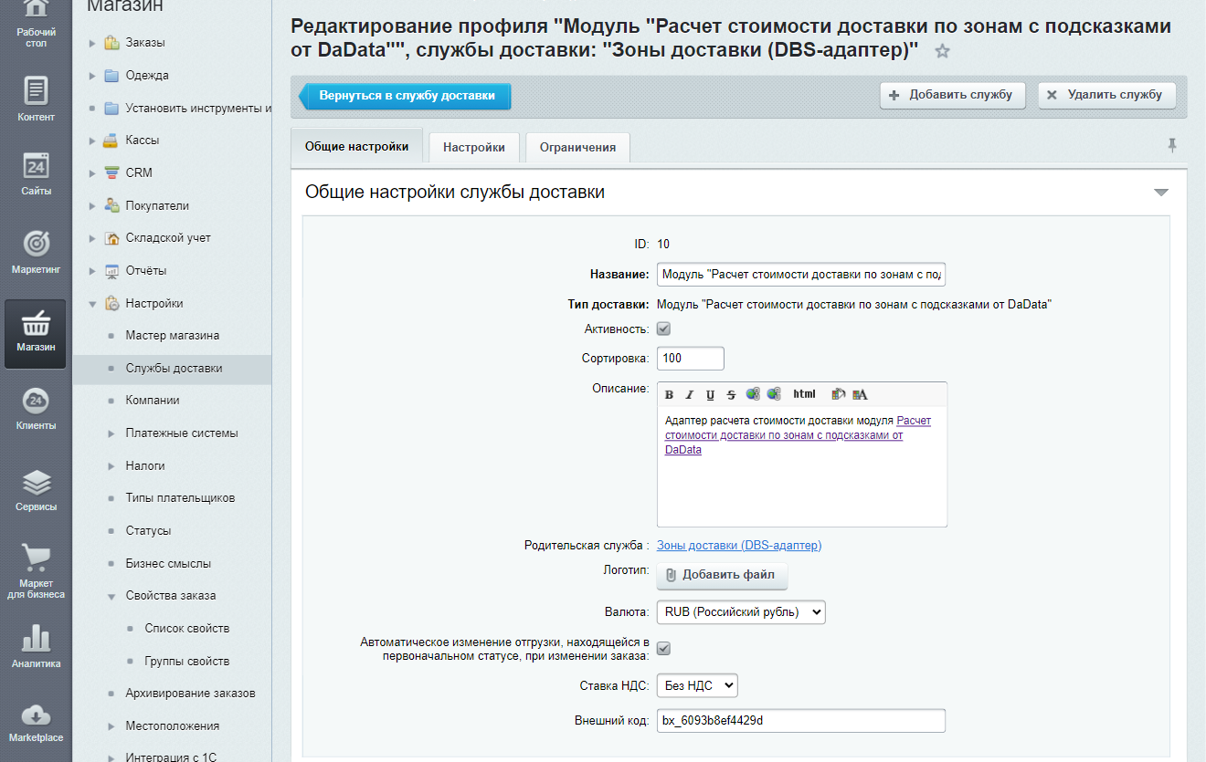 - Выбор ближайшего склада и правила расчета модуля «Расчет стоимости доставки по зонам с подсказками от DaData».