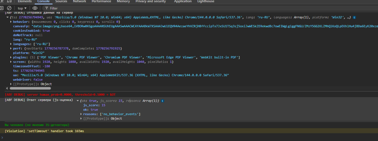 2. Front-end фильтр (JS + PHP) — поведенческий анализ в браузере (движения мыши, клики, headless‑признаки и др.) с передачей результата на сервер.