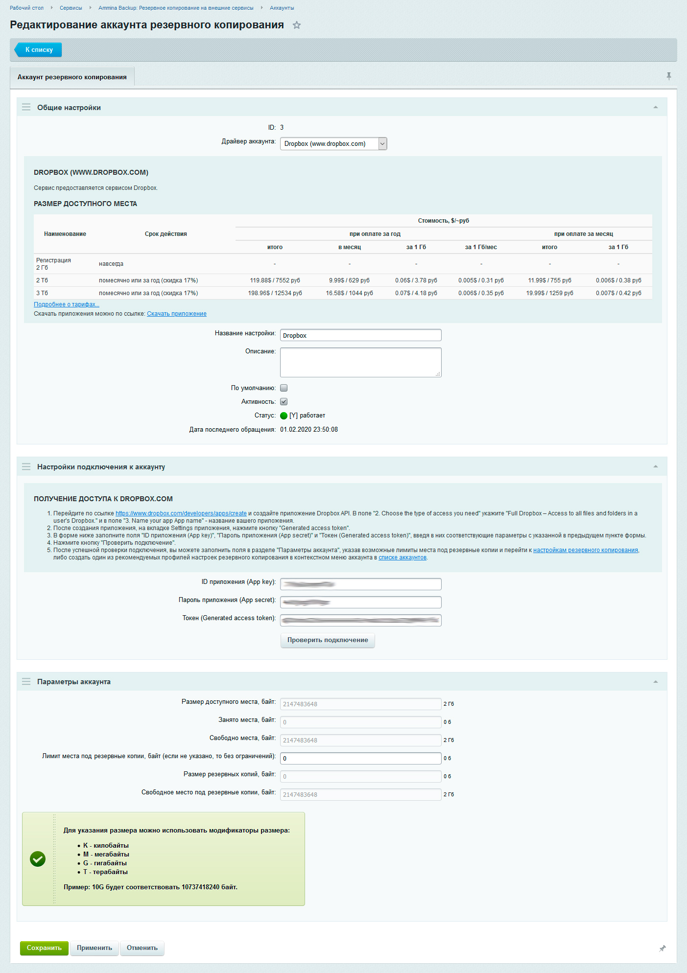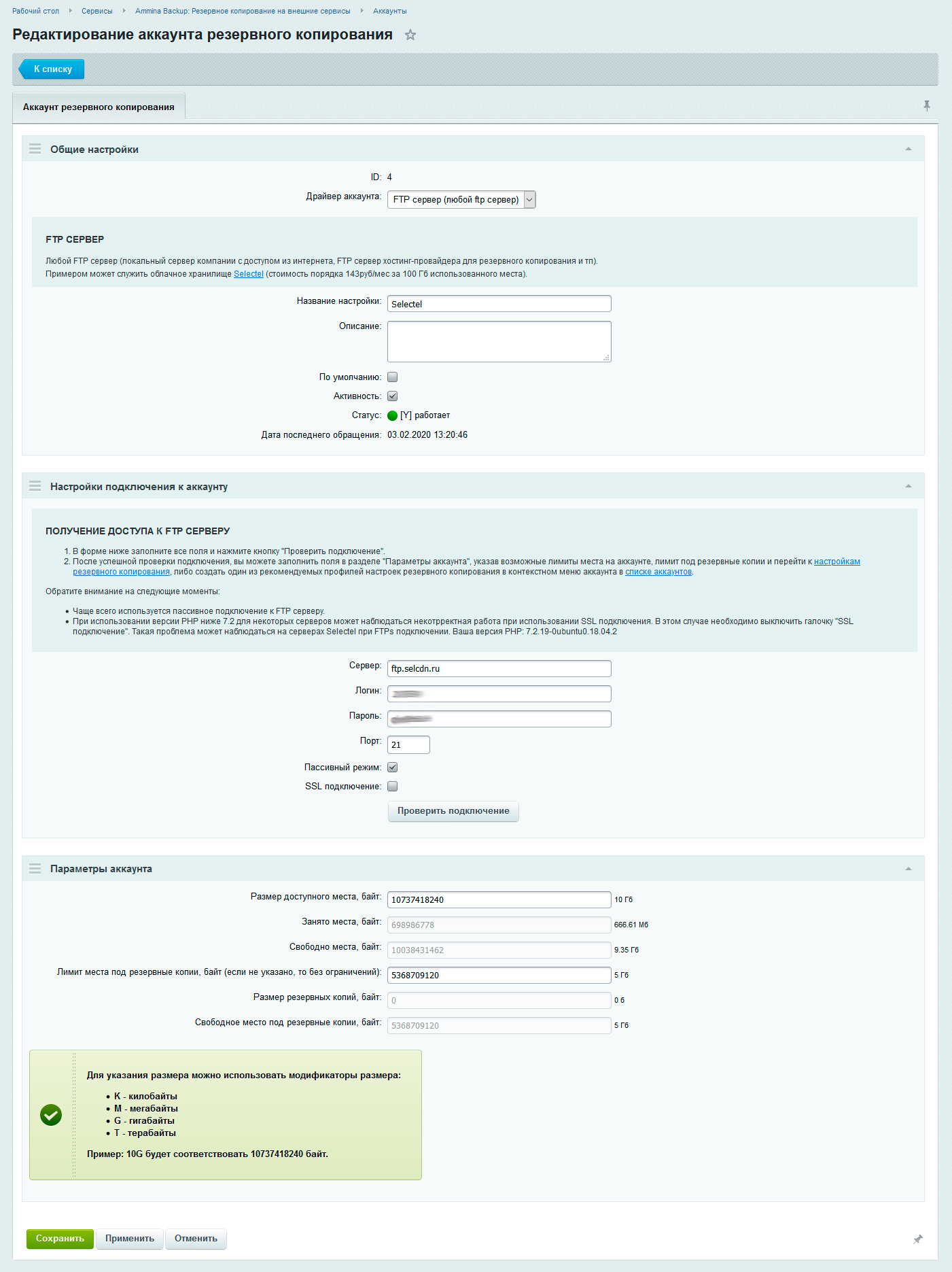 | Возможность ручного запуска процесса создания резервных копий | Возможность использования собственных драйверов для аккаунтов резервного копирования (либо напишите нам - разработаем и добавим необходимый драйвер) | |||