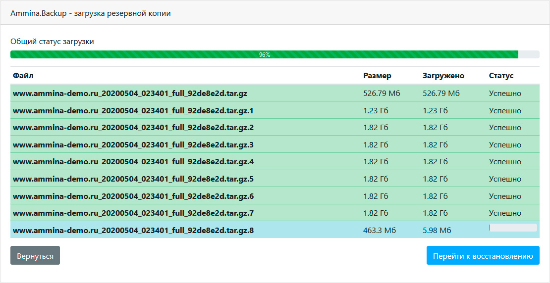 | Автоматическая проверка корректности резервных копий в хранилищах | Возможность скачивать резервные копии из хранилища | |||