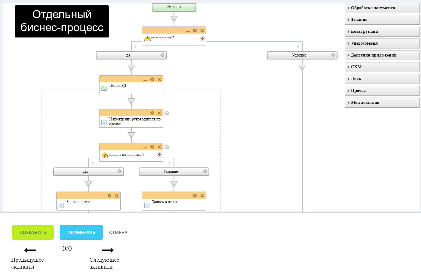 Открыть отдельный бизнес-процесс можно нажав на соответствующую ссылку в колонке “Название БП”.