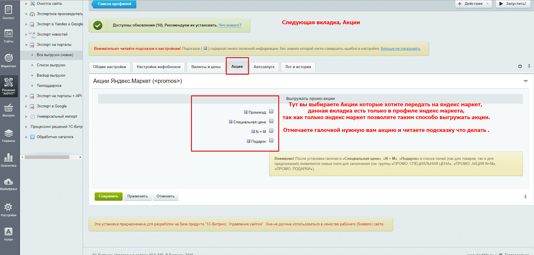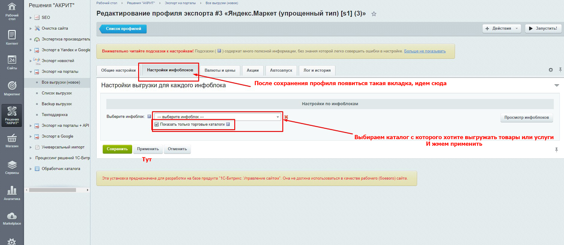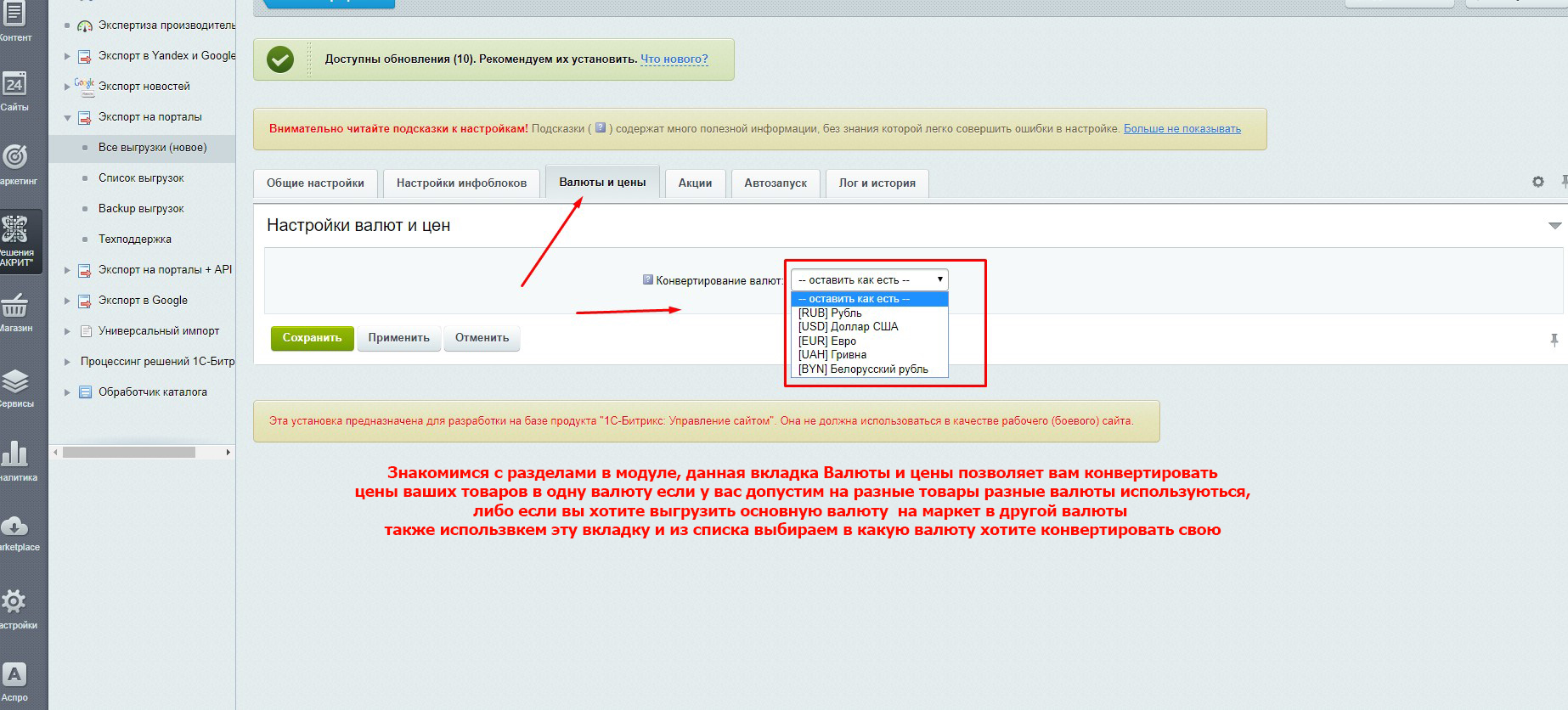 Публикация товаров на сторонних ресурсах – отличная реклама и способ привлечения на Ваш сайт посетителей, уже готовых к покупке конкретных продуктов. Приведу пример для интернет-магазинов: представьте себе что вы работаете над одним СВОИМ магазином а в итоге получаете конверсию и заказы сразу с нескольких, и при этом не нужно задумываться над обновлением цен на каждом ресурсе, описаний, фотографий, да характеристик в конце концов.. и т.д. Все это происходит в автоматическом режиме когда вы изменяете или добавляете что либо на свой единственный сайт.. Опять же не тратя самый ценный ресурс в жизни - ВРЕМЯ на модерацию сторонних ресурсов не говоря уже про финансовую сторону вопроса. С модулем «Экспорт товаров на торговые порталы» - вы настраиваете только первоначальную выгрузку, а дальше все происходит в автоматическом режиме.
