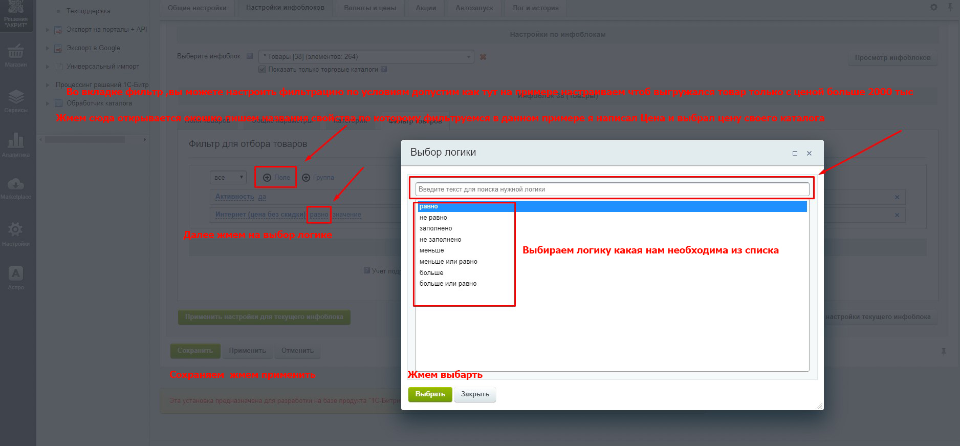 - поддерживает работу с условиями и группами условий, что позволяет исключить из выгрузки лишние товары и таким образом оптимизировать выгружаемый каталог чтобы экономить рекламные средства и не выгружать товары которые просто съедают бюджет