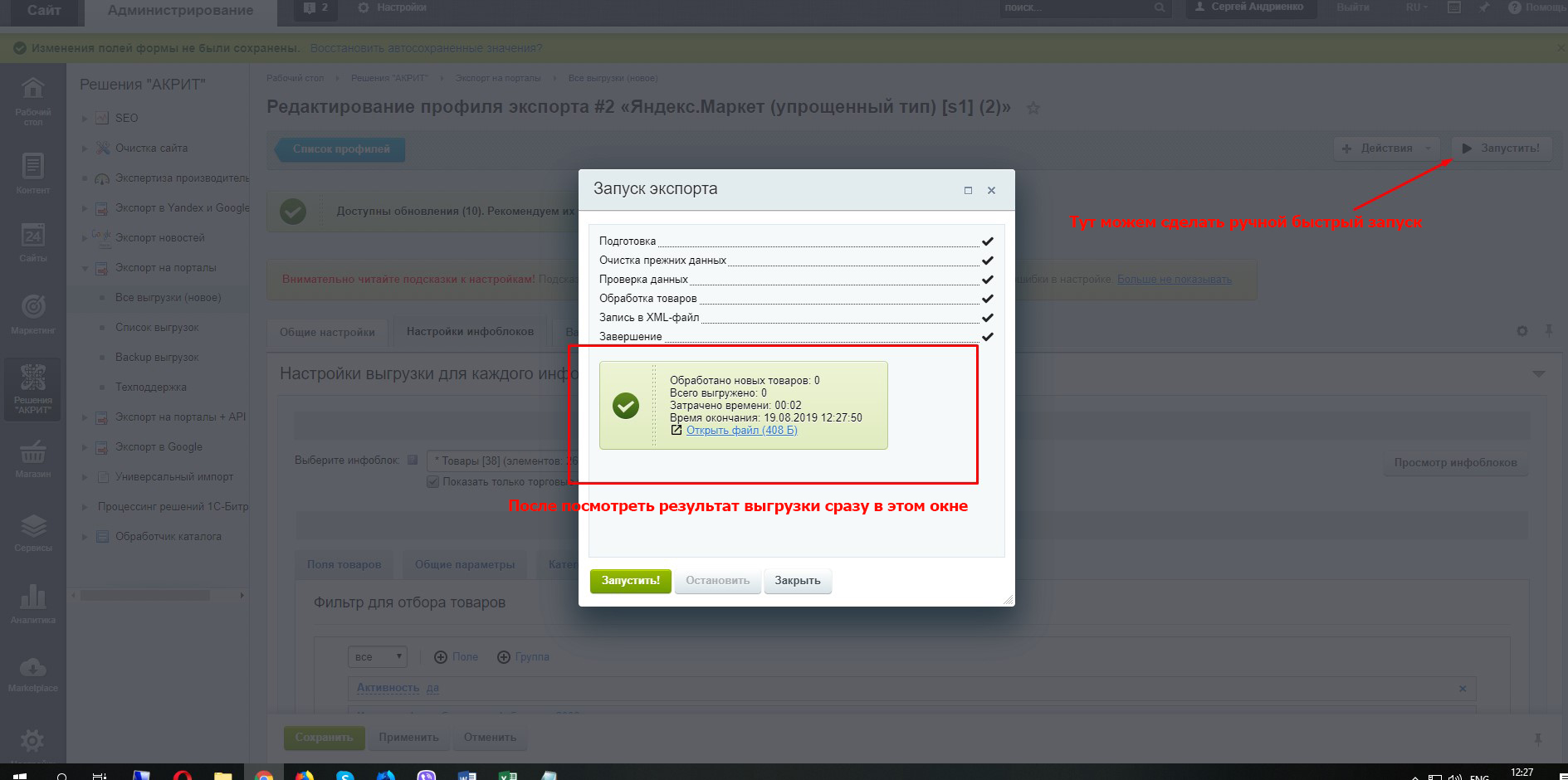 Все !!!.. всего 2 простейших шага которые отделяют Вас от многократного увеличения продаж без приложения дополнительных усилий с помощью нашего скромного модуля «Экспорт товаров на торговые порталы»
