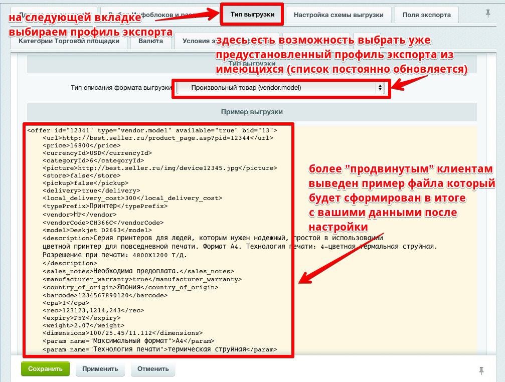 Вот список уже реализованных возможностей для гибкой настройки выгрузок: