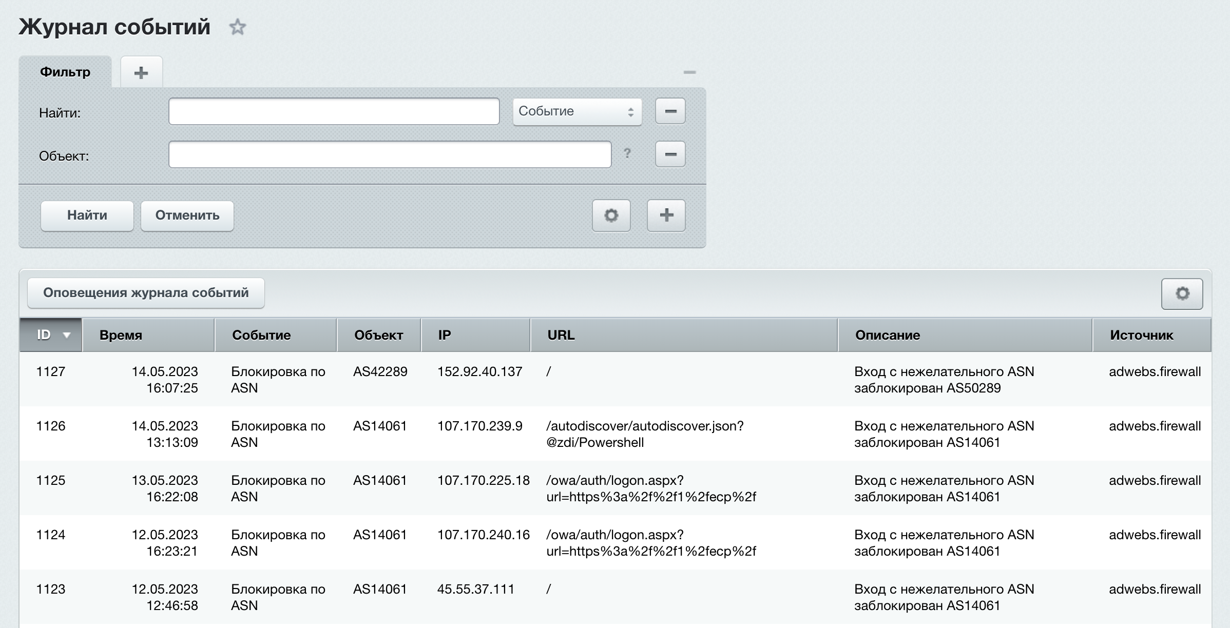 Это мощный инструмент блокировки вредоносного трафика для 1С-Битрикс, поэтому его необходимо использовать с осторожностью. Относитесь к нему как к инструменту с нулевым доверием — будет заблокирован весь трафик провайдера, которому вы не доверяете, кроме IP-адресов и URL-адресов, для которых вы явно установили исключения. Всегда отслеживайте блокировки в журнале во избежание блокирования полезного трафика — ваших клиентов, поисковых ботов, ваших сервисов на других платформах.