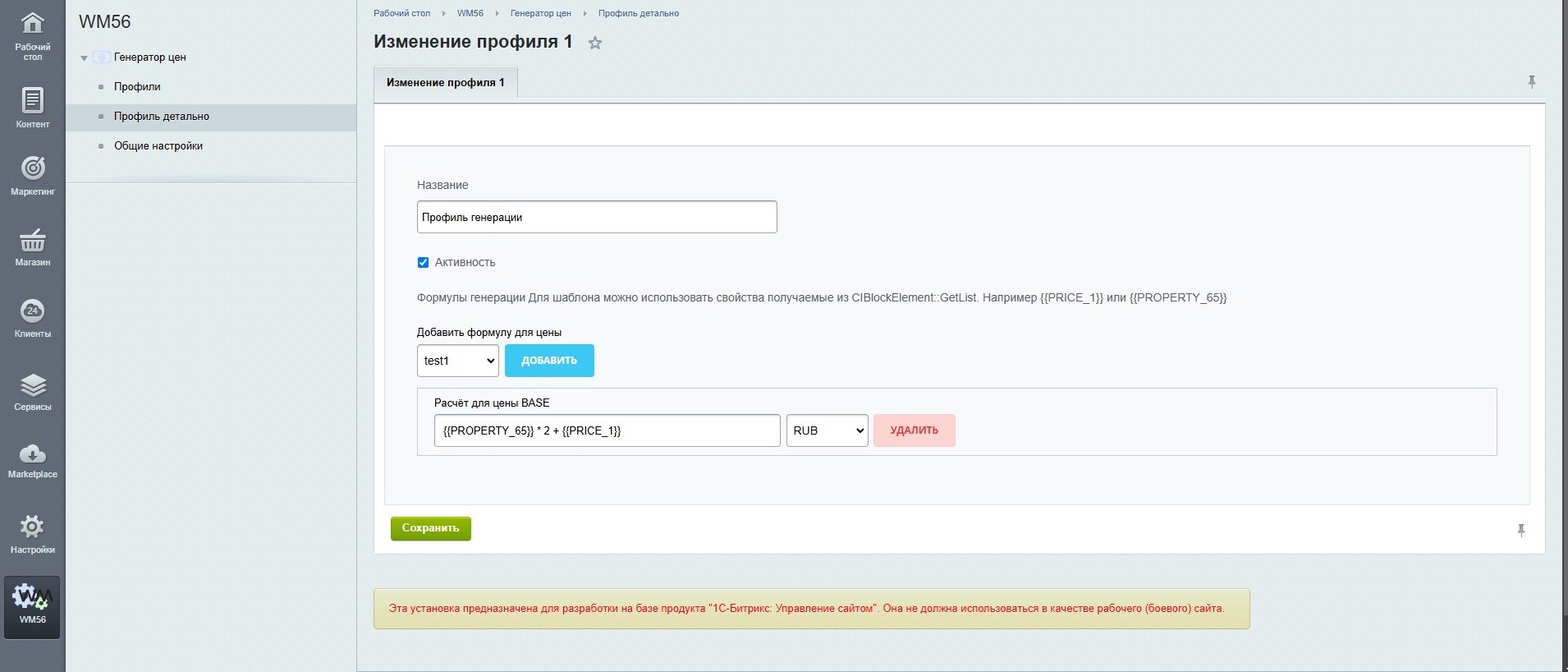 Основные возможности:Автоматический расчёт цен: Модуль позволяет создавать цены на основе заданных формул, используя существующие ценовые параметры и свойства товаров.