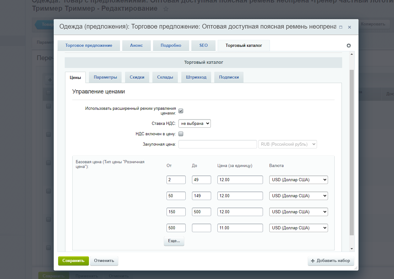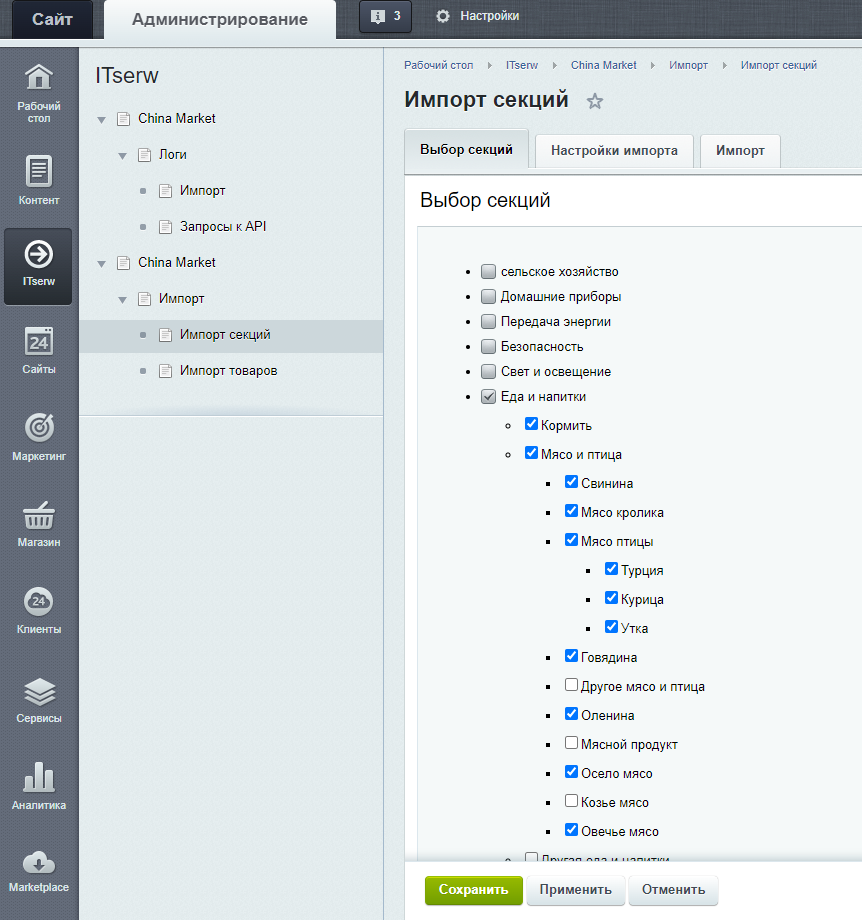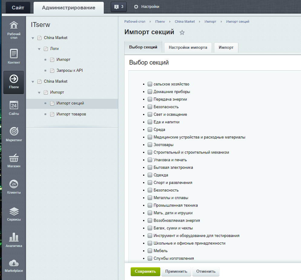 Модуль позволяет реализовать загрузку в инфоблоки разделов и товаров из китайского маркетплейса Alibaba.com, а также выполнить конвертацию валют с заданной наценкой и перевести названия и описания товаров, после чего они могут быть выведены в каталоге интернет-магазина.