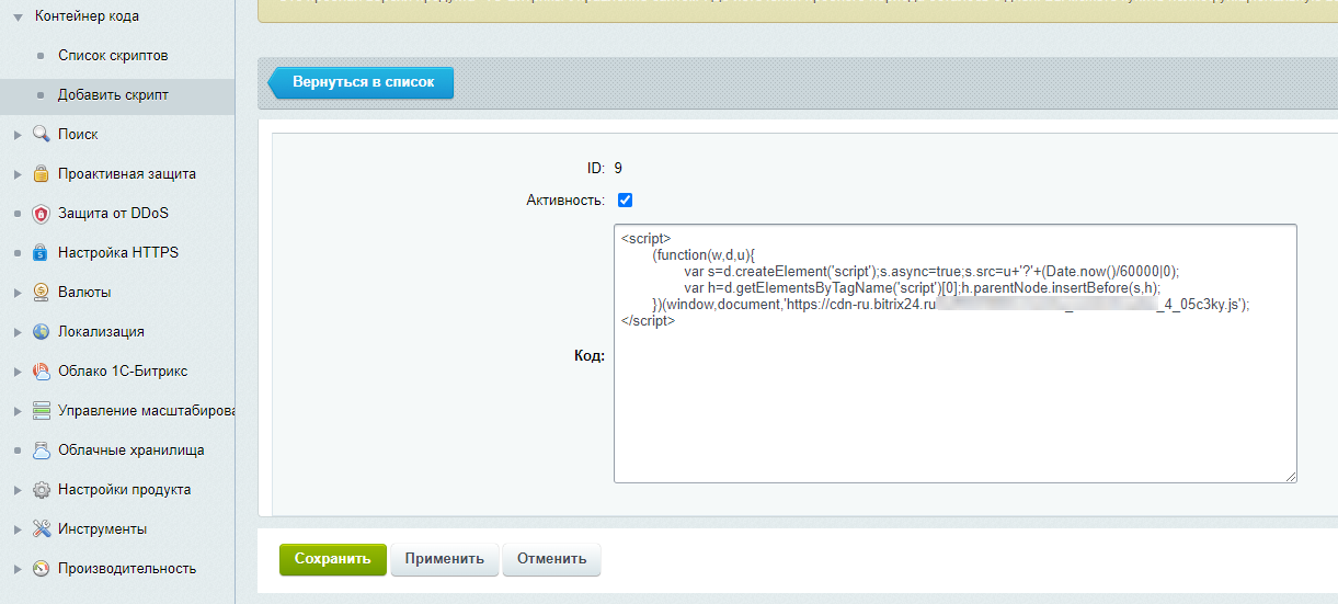Модуль позволяет разместить любой код на страницах вашего сайта быстро и удобно.