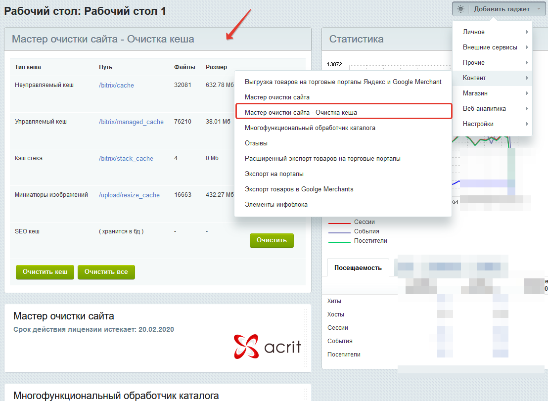 19. Виджет на рабочий стол с очисткой кэша и SEO-кэша модуля инфоблоков