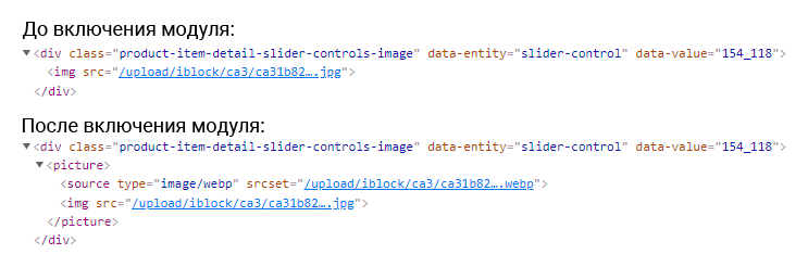 Возможно преобразование изображений в современный формат webp для дополнительного ускорения. Если браузер не поддерживает формат webp, то изображение будет отображено в старом формате — обычно, это jpg или png.