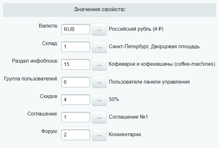Это могут быть: элементы инфоблоков, разделы инфоблоков, инфоблоки, highload-блоки, элементы highload-блоков, элементы медиабиблиотеки, разделы медиабиблиотеки, пользователи, группы пользователей, корзины, заказы, продукты, доставки, платежные системы, валюты, склады, формы, сайты, форумы, блоги, документы, баннеры и т.д.