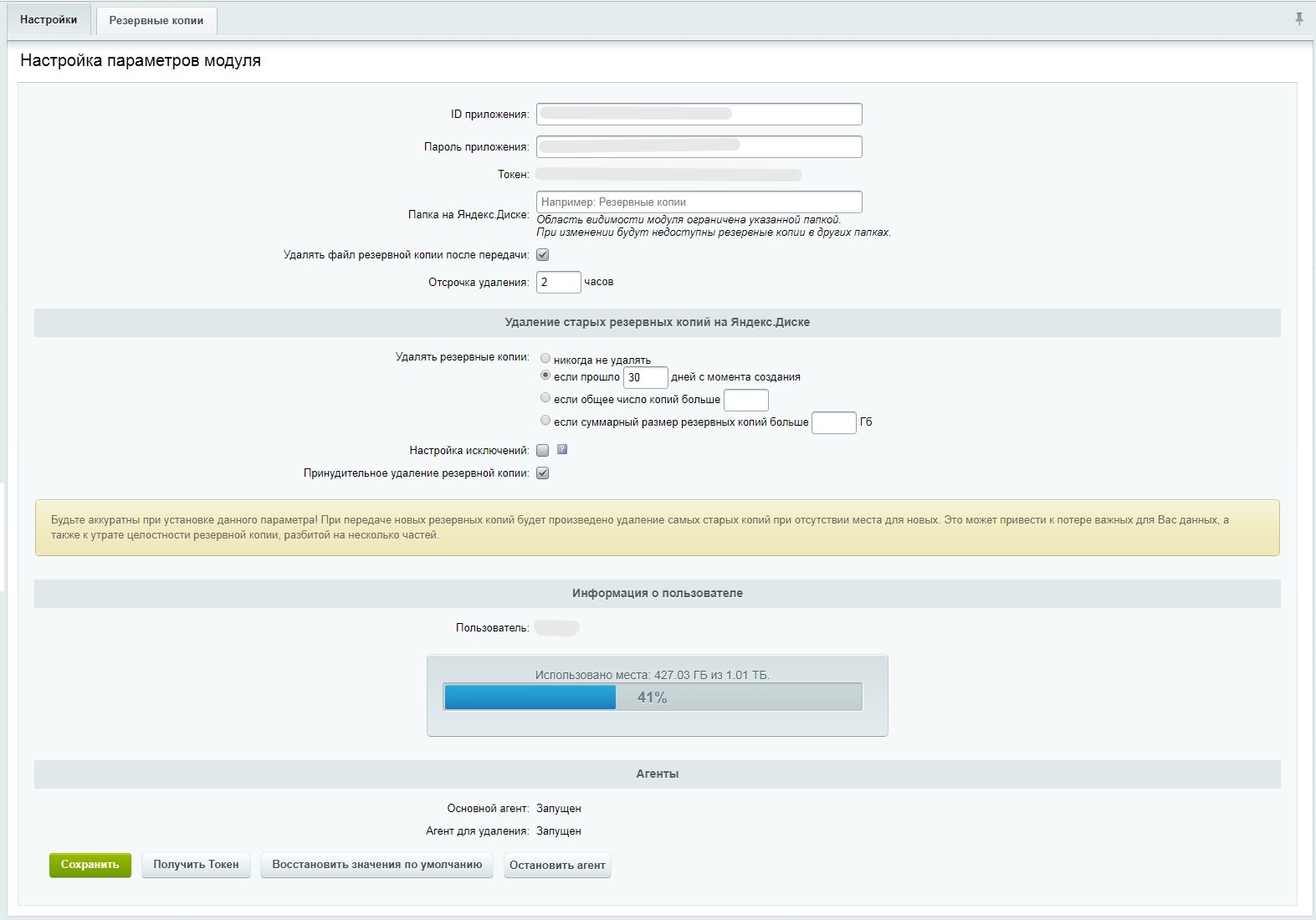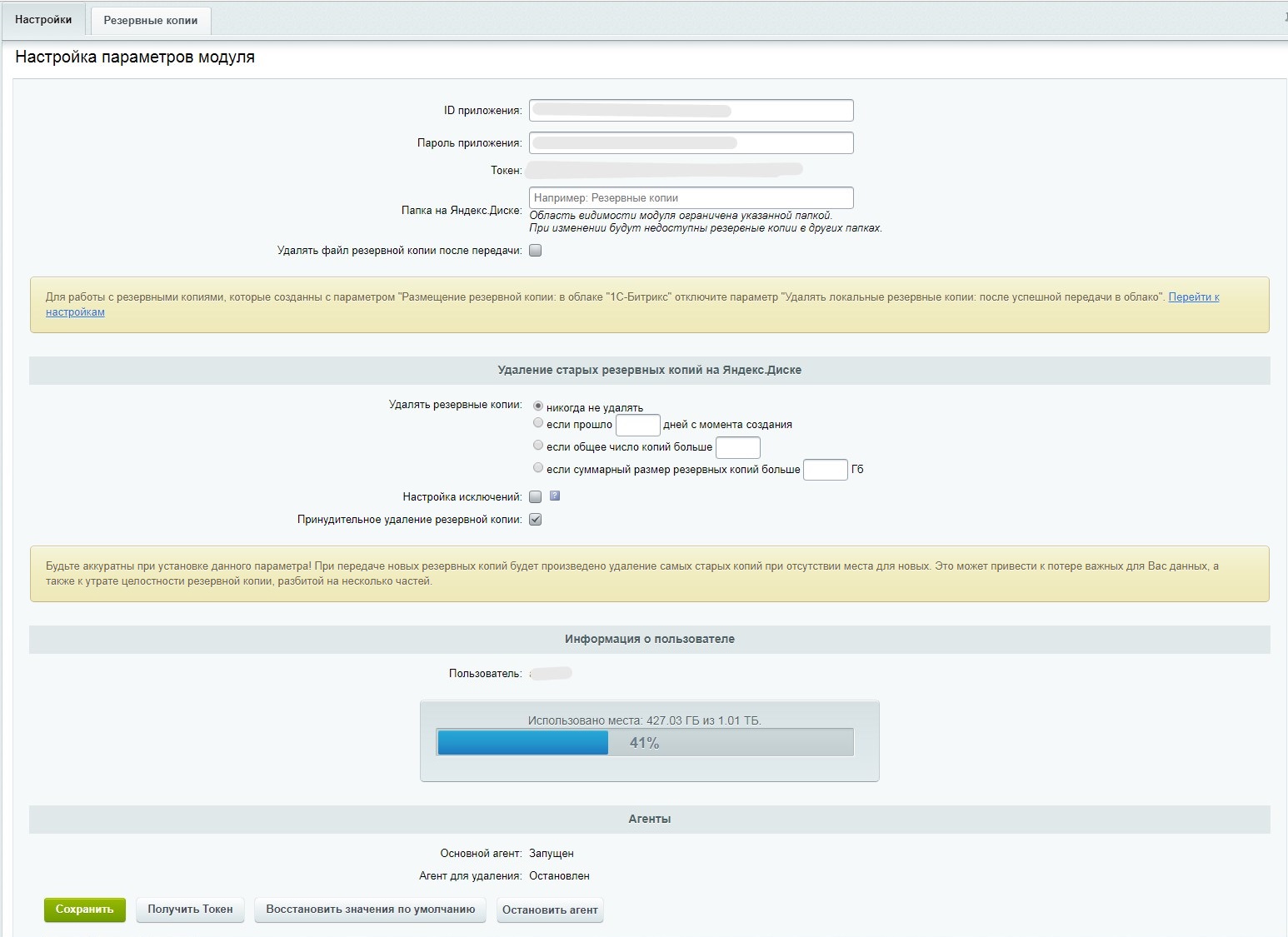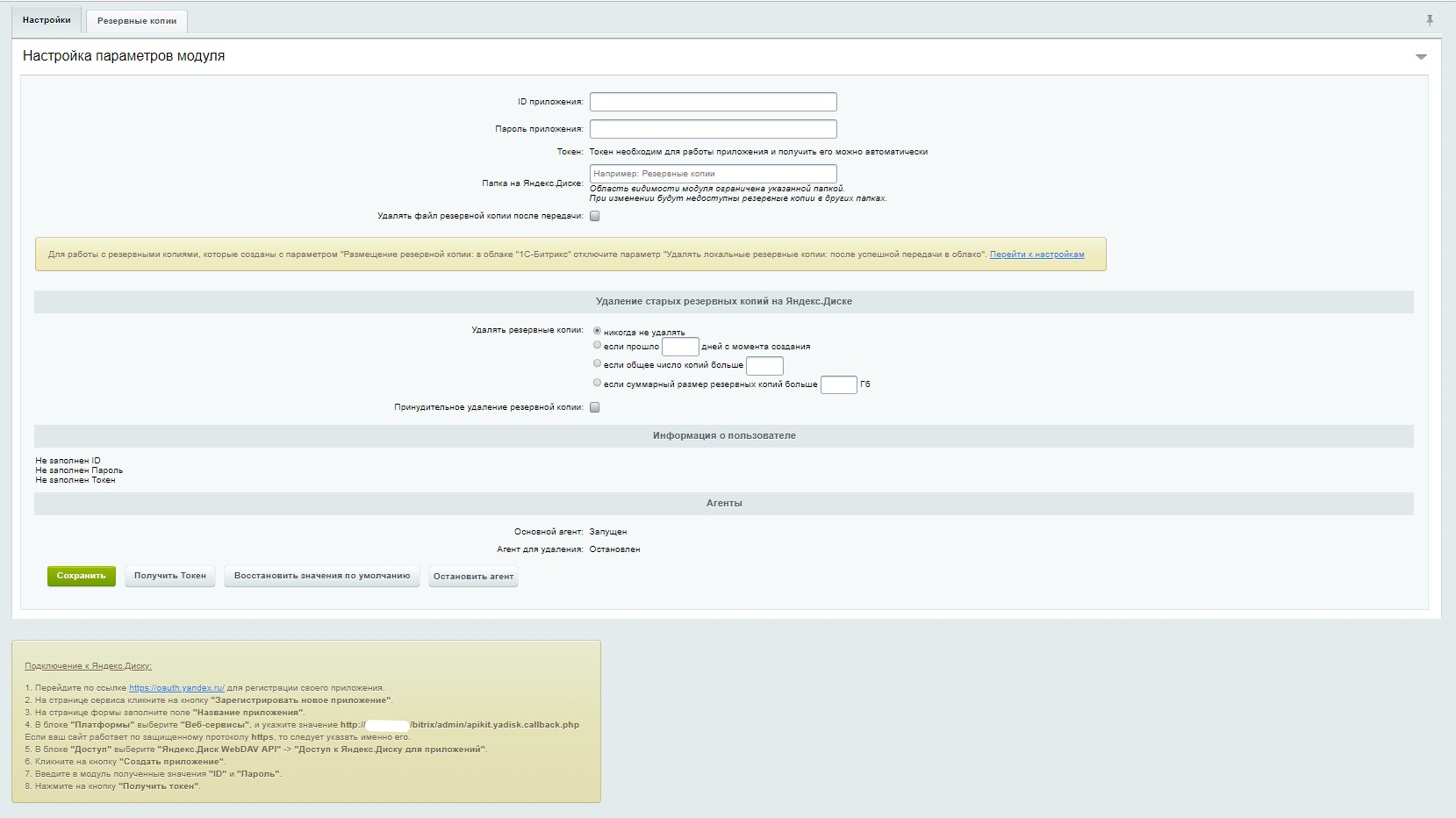 Модуль отправляет резервные копии сразу на Яндекс.Диск при ручном и автоматическом создании бэкапа средствами Битрикс.