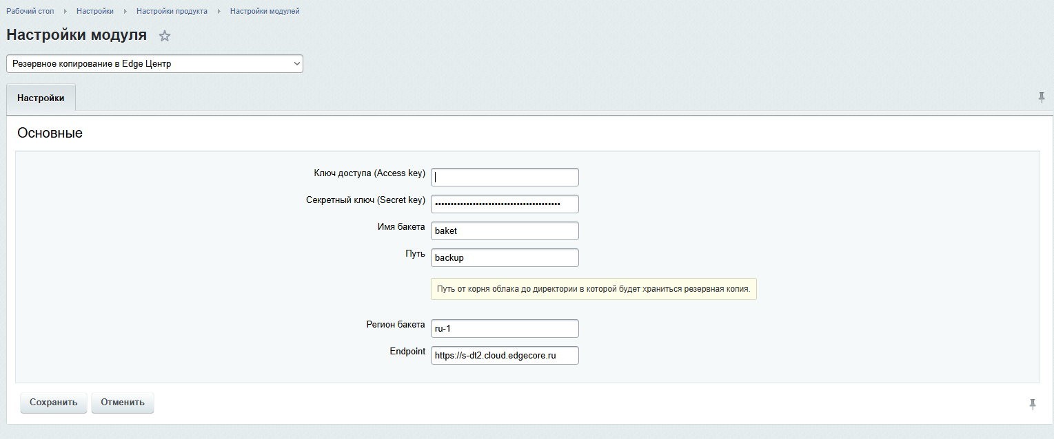 Модуль резервного копирования в Облако Edge Центр для 1С-Битрикс