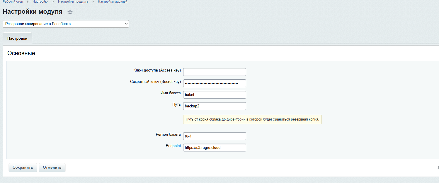 Модуль резервного копирования в Облако Рег для 1С-Битрикс