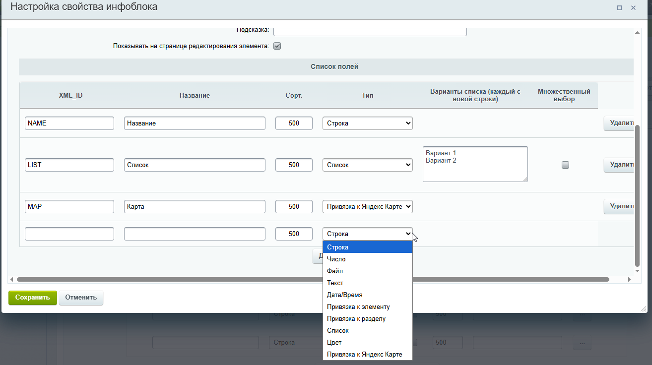 Модуль добавляет в Битрикс новый тип свойства инфоблока, позволяющий создавать сложные структуры данных с различными типами полей в одном свойстве.